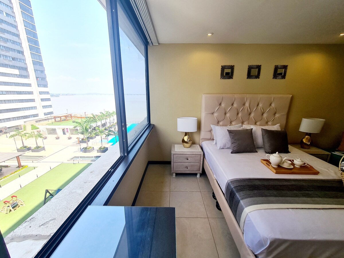 Te ofrezco una combinación perfecta de comodidad y elegancia. Desde la sala con TV y muebles acogedores hasta su dormitorio diseñado para el descanso, cada rincón está pensado para brindarte una experiencia única. -Cocina equipada. -Dormitorio acogedor. -Piscina/Área social (para estadías de 10 días) -Lavandería. Además, la vista del río Guayas te regalará amaneceres y atardeceres espectaculares. Ideal para viajeros que buscan tranquilidad sin alejarse de la ciudad. ¡Te esperamos!