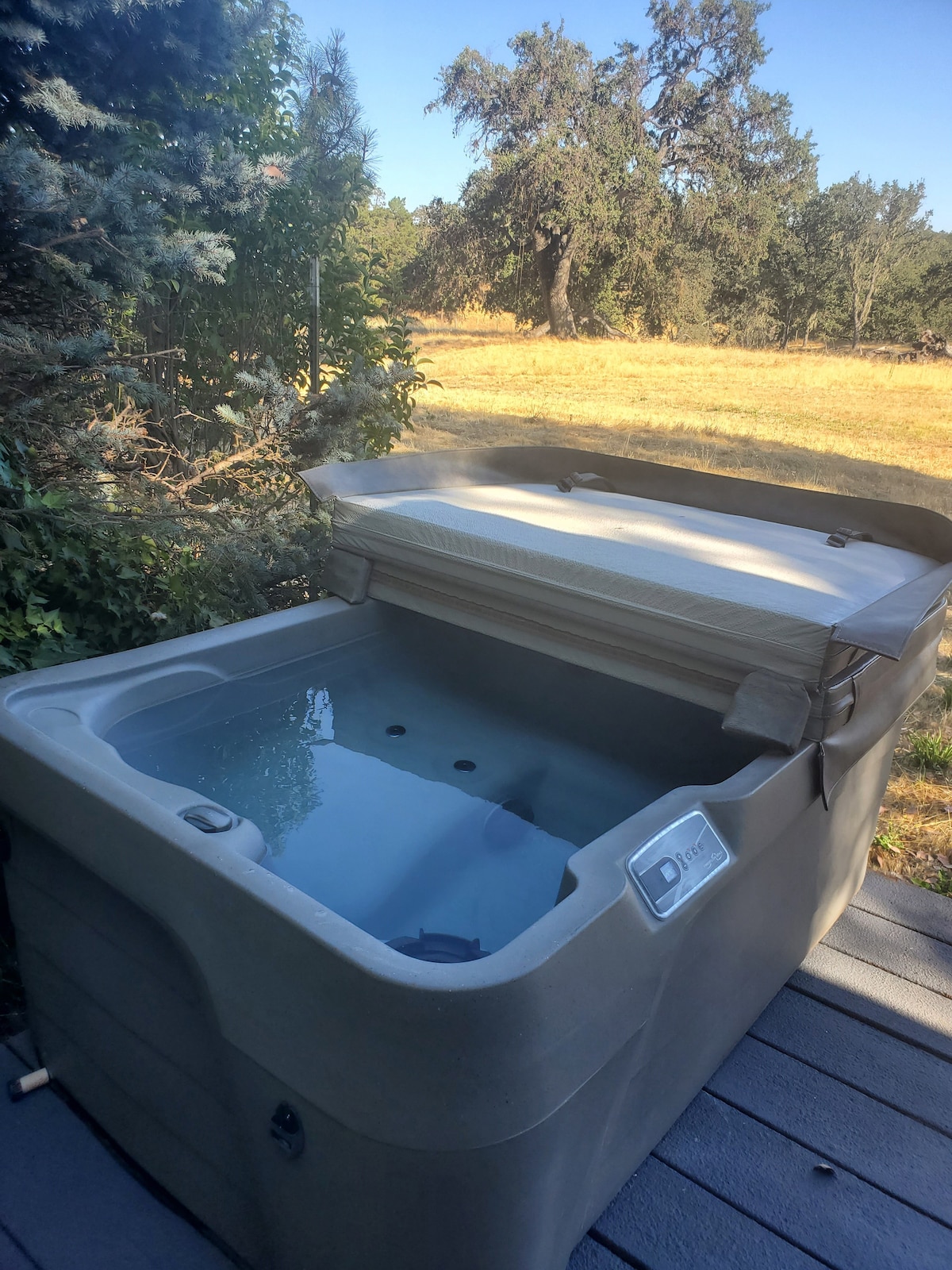 We offer a full service guest house, with a private entrance. With attention to every detail and decorated with a fun mid-century modern flair! It has one bedroom, one bath, kitchen with all the amenities (including a stocked coffee station), and living room featuring a smart tv, and satellite. We offer WIFI as well. Should you need to do laundry, we have a brand new washer and dryer for your convenience. The guest house has a private deck which you will enjoy sipping a local wine on and enjoying the beautiful sunset! We also offer an outdoor table with chairs next to the deck for your enjoyment! From booking, to check out we will be available should you have any questions or as needed. Our goal is to make your stay as comfortable as possible. We hope to have the chance to meet/greet each one of our guests while they are staying in the guest house, however if that isn't possible we will have all accommodations ready! We also try and be as flexible as possible, please don't hesitate to ask about early check in, or late checkout if needed. We provide a house binder that contains pertinent information and our "favorites list" for the Central Coast area. Shannon and her husband Reggie live in the main home on the property. The guest house is nestled among many beautiful, mature oak trees in a quaint and quiet neighborhood. It’s centrally located close to downtown Atascadero, with easy access to Highway 101 North/South, and Highway 41 to Morro Bay. Uber Pool on site, for homeowners use, (however ask us in advance about our policy and the possibility of using the pool and or hot tub)