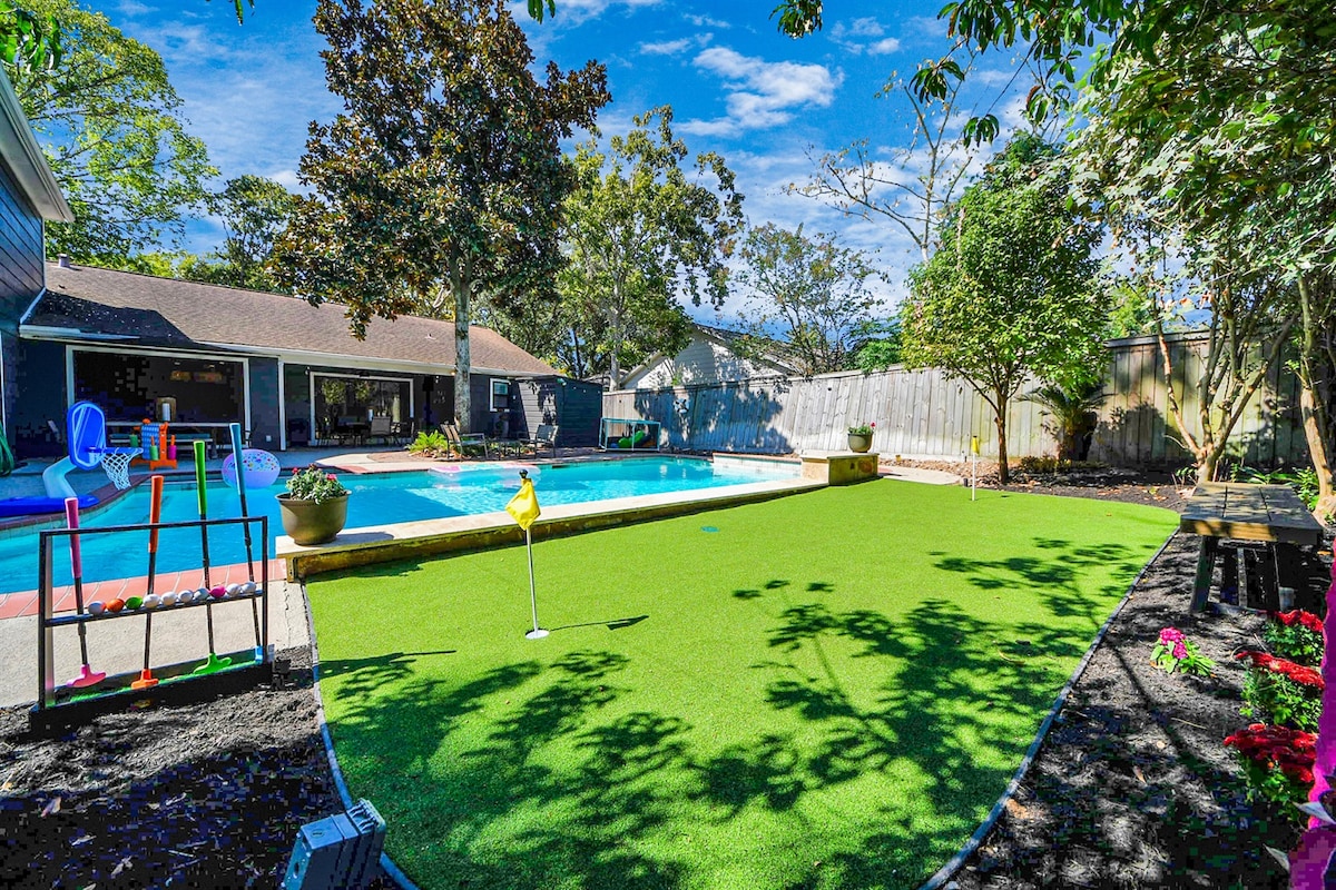 Modern & Cozy Retreat with Pool, Hot Tub,Gym + Outdoor Kitchen.Welcome to this relaxing home in Houston TX. This beautiful 4-bedroom, 2-bath house is perfect for families or business travelers. Enjoy this fully equipped modern space with cozy touches,a spacious outdoor kitchen,new heated pool and spa under a covered terrace-ideal for relaxing or entertaining.Great location close to Airport and top restaurants, shops, and markets. Whether you’re here for work or fun, you’ll feel right at home