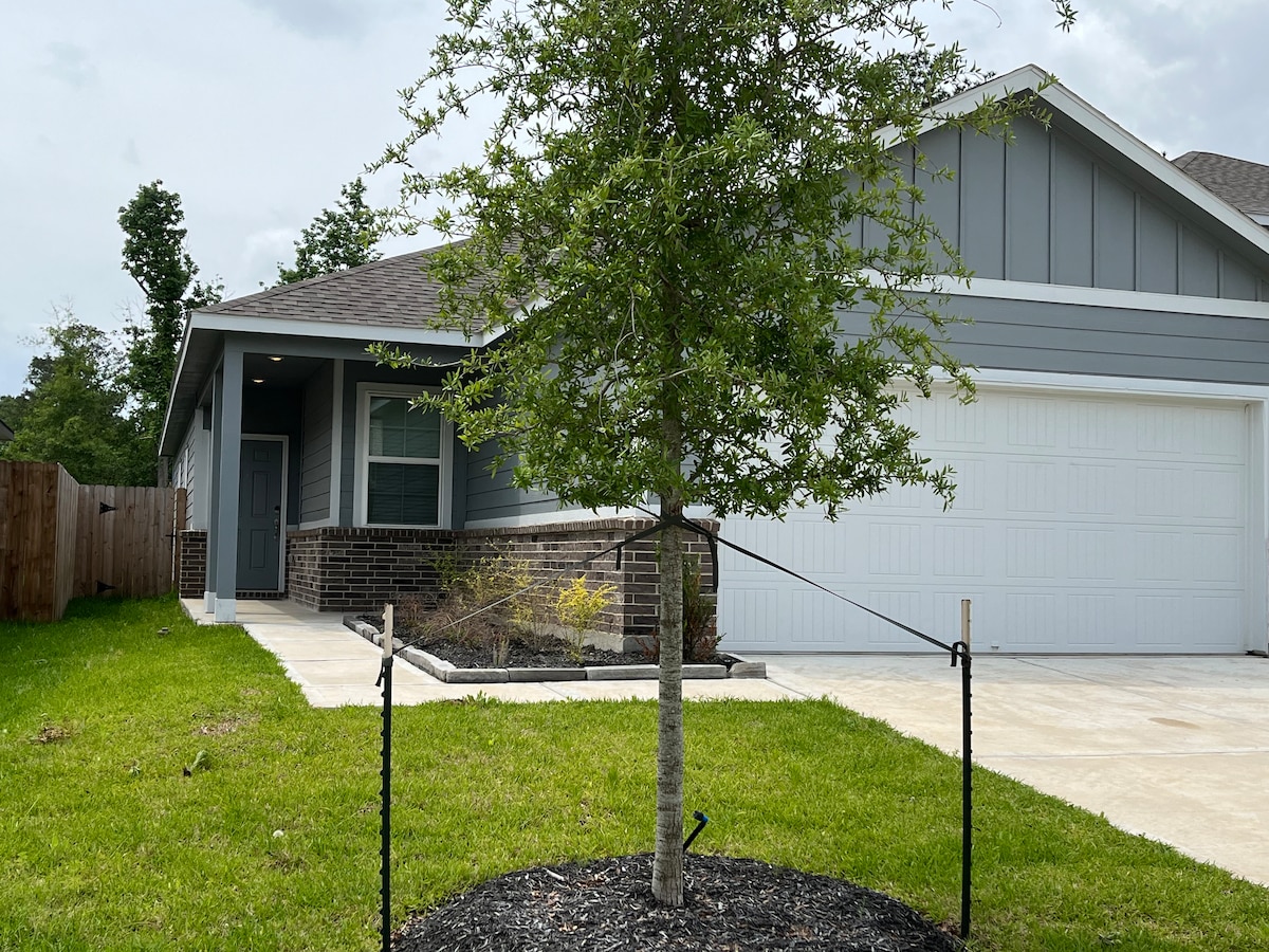 This perfect get-away for cozy adventures, group retreats, families & friends! The warmth of home & minutes from shopping, this spacious “fenced-in backyard” and also includes a miniature golf ⛳️ putting green w/putters! Just 25 minutes away from NRG Stadium, The Houston Livestock Show & Rodeo & 2026 FIFA Soccer World Cup. Great Hiking & biking trails! Sleeps 8 comfortably. A family get-away, complete w/a grill to barbecue, or bring a boat to launch for the day!