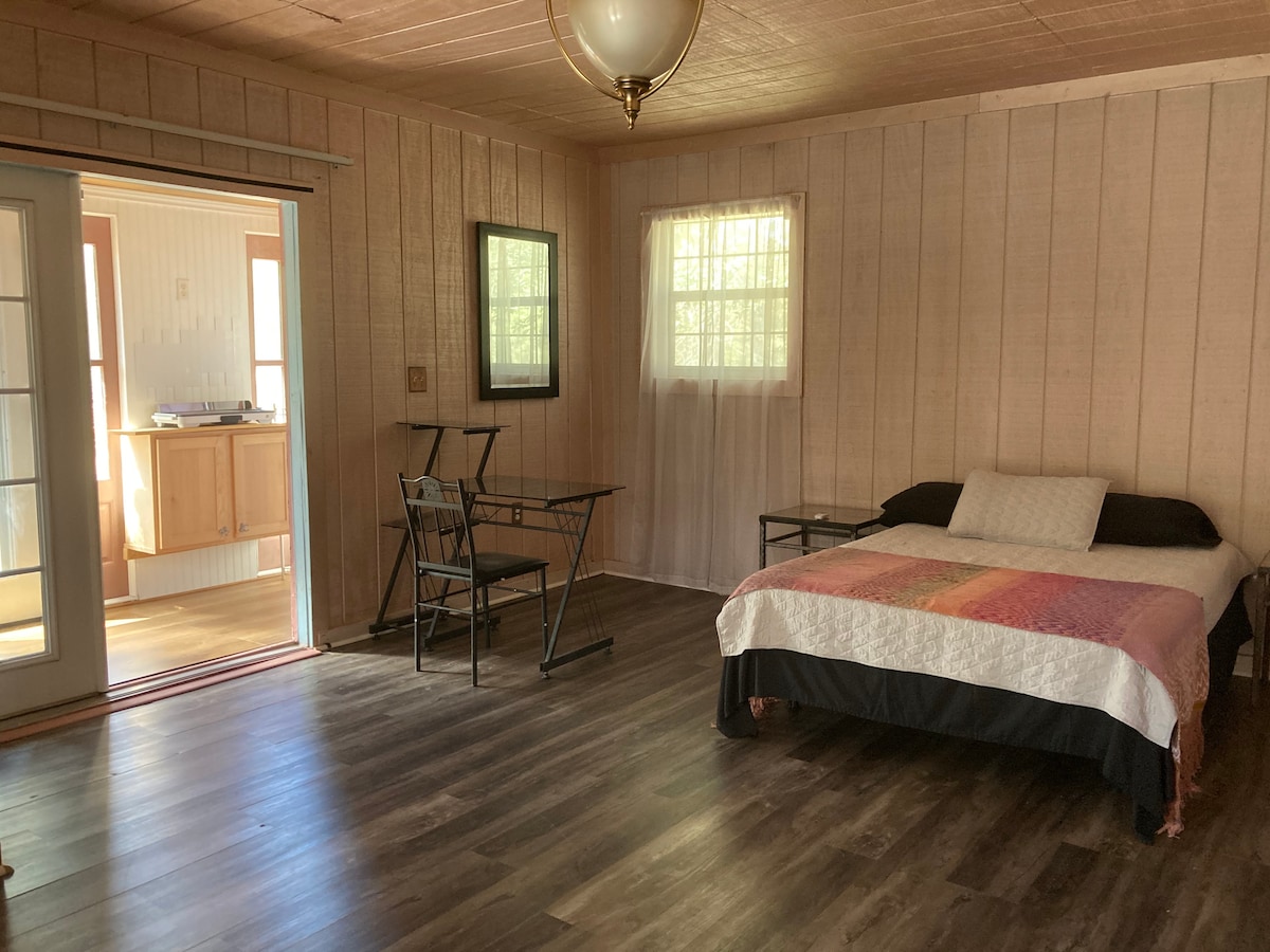 Located on a 40 acres of former golf course, this beautiful cabin can be used as your ultimate gateway! Plenty of parking available for guests, you can also fit a work vehicle. One bedroom with plenty of space. Recently renovated enjoy the view at the pond onsite a getaway or simply stay close from work.