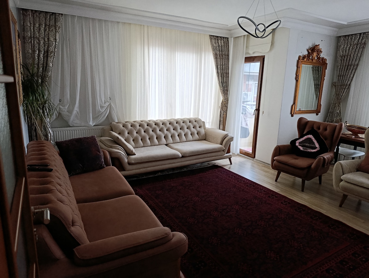 Enjoy a stylish experience at this centrally located pet friendly place. The apartment is in a safe and peaceful area. You can enjoy the cinema with smart tv supported projection. There is central heating&ac. Lovely,sunny, spacious, bright, large apartment. Across the building, there is a park surrounded by greenery where you can do sports. There is private parking. Bağdat Street is within walking distance. 5 minutes walking distance to public transport, stops, pharmacies, hospitals and cafes.