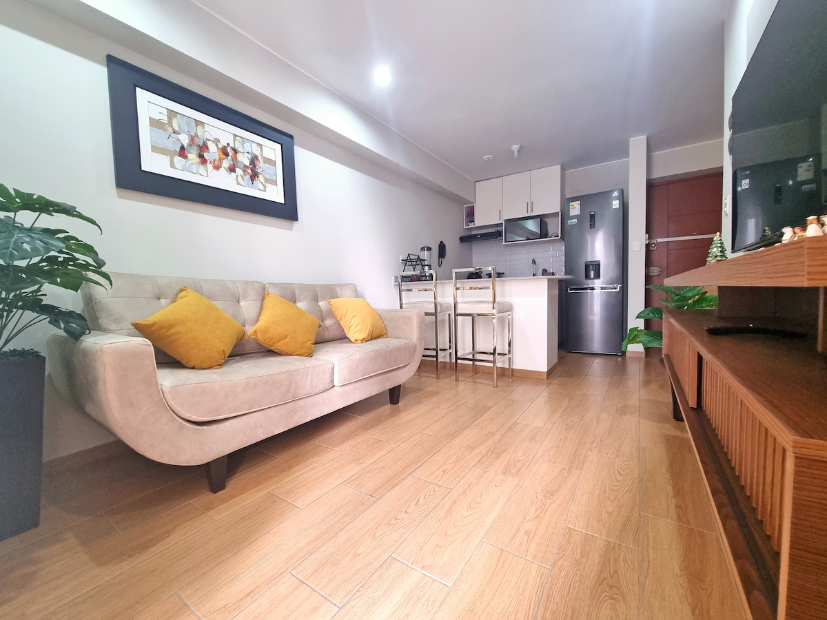 Departamento moderno y muy confortable en zona residencial, muy tranquila y segura. Con acceso a múltiples servicios: supermercados, restaurantes...etc Cerca de la Universidad San Martin, USIL y Agraria. Cuenta con una luminosa sala y comedor Cocina bien implementada Dos amplios dormitorios con sus respectivos vestidores Lavandería 2 Baños con ducha Estacionamento externo gratis con vigilancia 24h Internet FIBRA 250 Mbps, Netflix, Cable TV