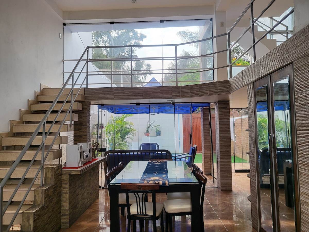 Experience the perfect blend of design and comfort in our spacious home. Newly renovated bathrooms, multiple outdoor living areas and lush gardens, ideal for birdwatching. Nestled in a sunny, tranquil area of Lima with exclusive access to all amenities, a well-equipped kitchen, pool, & reliable WiFi. Walk to markets, coffee shops, restaurants, pharmacies, and more. Whether you're seeking relaxation or entertainment, our home provides the ideal retreat for your stay in Lima.