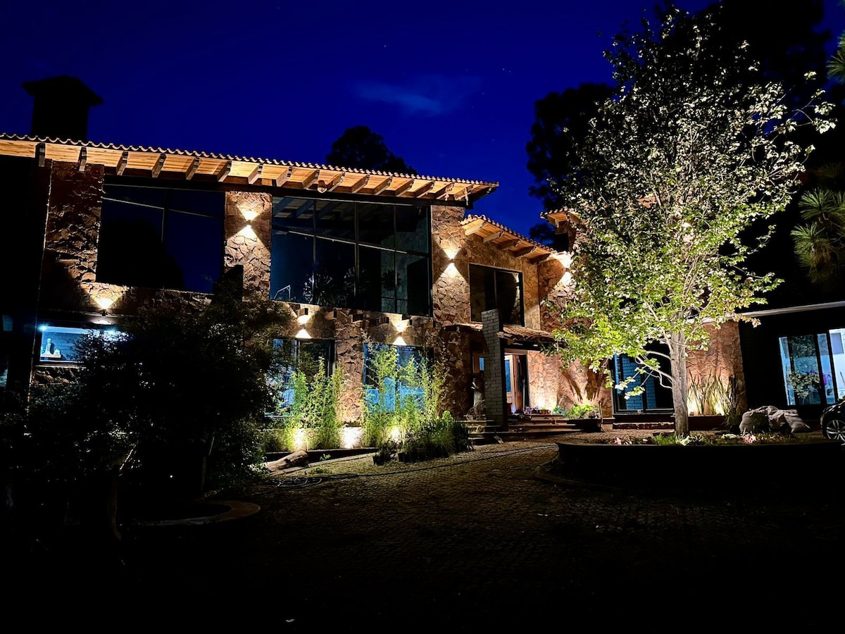 Welcome to Fun and Relaxation in the Forest Just 15 minutes from Tapalpa, this spacious and cozy cabin offers everything for an unforgettable Giant bouncer trampoline swings and slide Kids’ games and arcade machine Board games Grass 4x4 soccer field Grill and fire pit area 65” screen with streaming access Satellite Wi-Fi European memory foam mattresses and pillows Electric heaters Perfect for relaxing and creating unforgettable memories in the heart of nature.