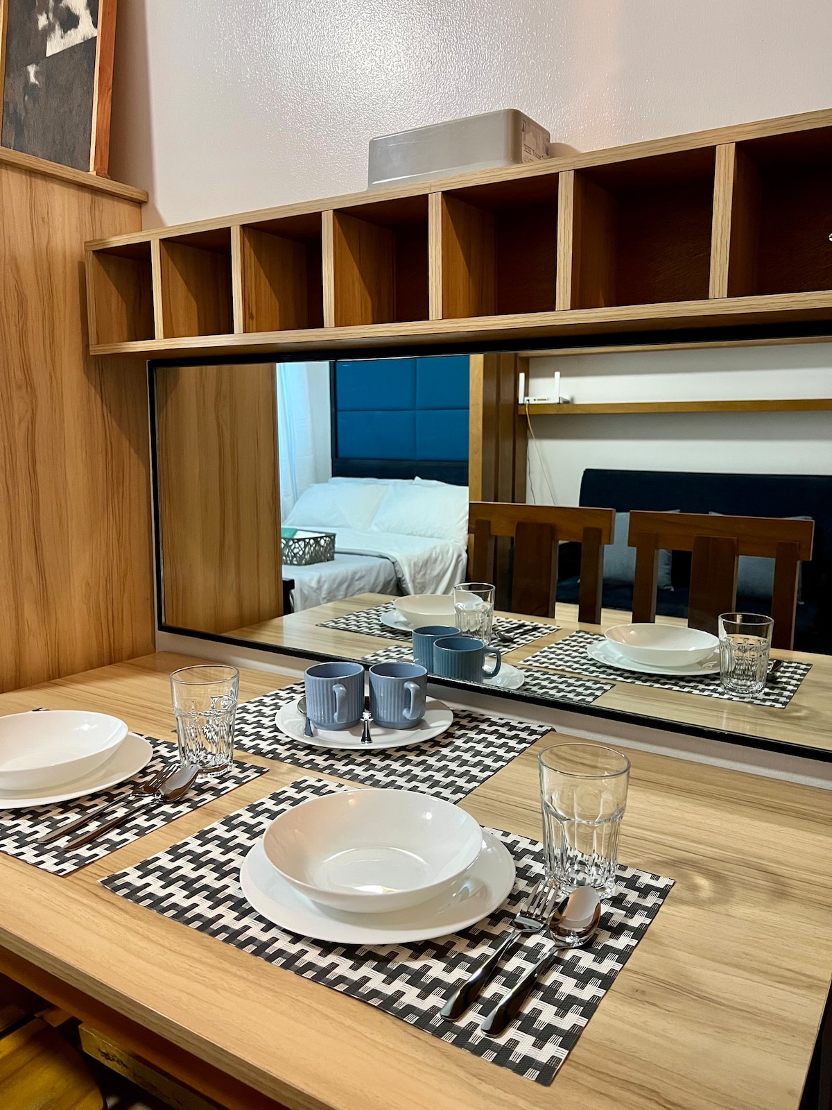 A fully furnished unit that has the amenities of a service hotel. The place is conveniently situated near public transport and is a walking distance to coffee shops and fast food chains. The unit has everything you’d need to make your stay as comfortable as possible. Strictly NO SMOKING. Once this is violated, you would be charged an EXTRA COST of 500 pesos for the thorough cleaning and removal of cigarette smell. Fees: Pool (weekdays) 200/guest (weekend) 300/guest Gym 300/guest
