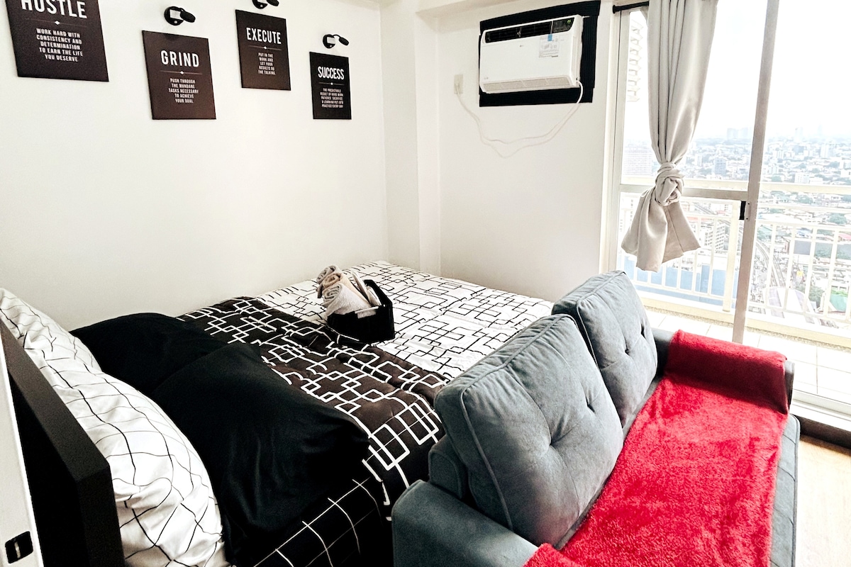 Keep it simple at this peaceful and centrally-located place near universities such as Ateneo de Manila University, UP Diliman, etc., malls and restaurants. The condo offers a relaxing queen-sized bed, a semi-equipped kitchen, a living area with a 50-inch 4K Ultra HD Smart Samsung TV , High-Speed Wi-Fi, an air-conditioning, a hot shower, and access to premium building amenities including an oudoor pool. Also, take in stunning city views right from the windows of the bedroom.