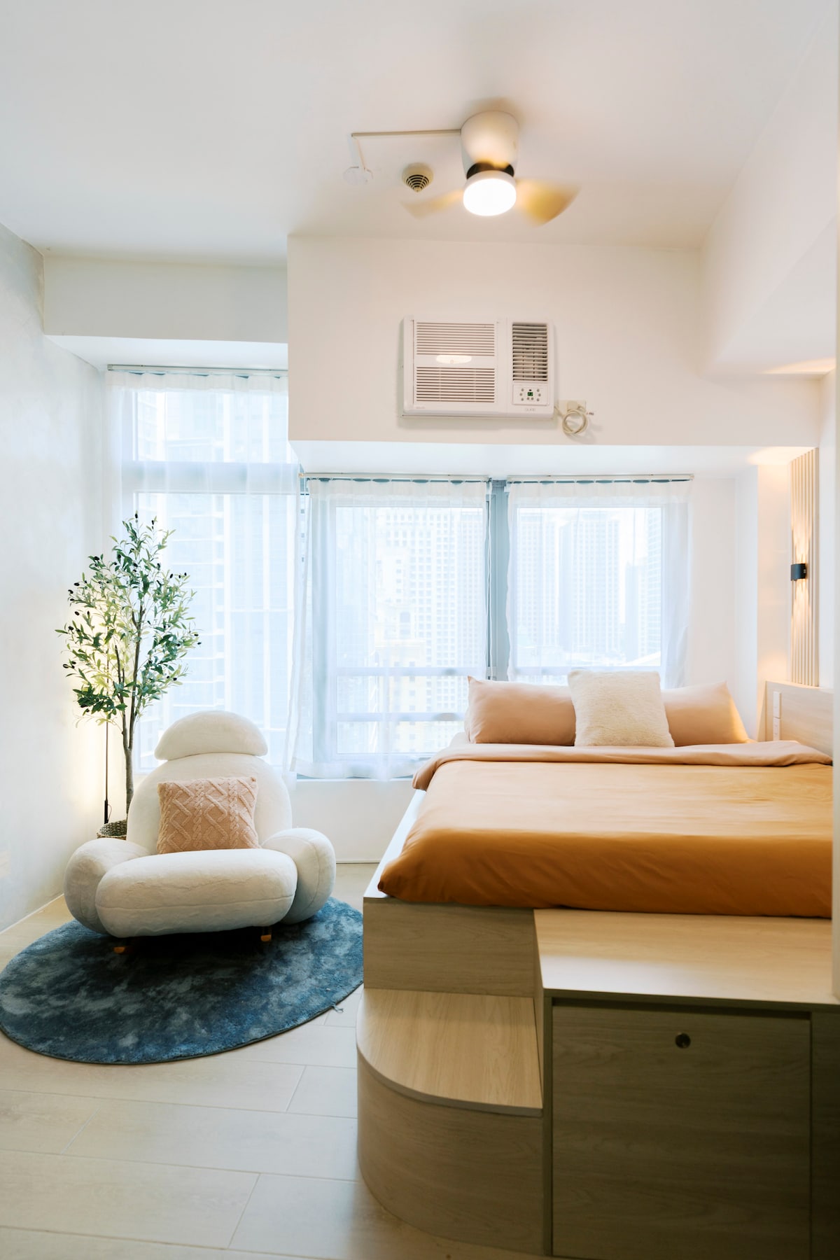 Feel stylish and experience the BGC vibe at this centrally-located place. Get direct access to Uptown Mall. This place is also just across the newly opened Mitsukoshi Mall. Our newly renovated place is bright and airy with a fantastic view of the Uptown Mall fountain show. Take an easy stroll as all major points of interests are just a few mins walk. Feel the energy of Uptown BGC. Shop, dine, or just have a relaxing break at the corner cafe. Come feel the energy of this vibrant community!
