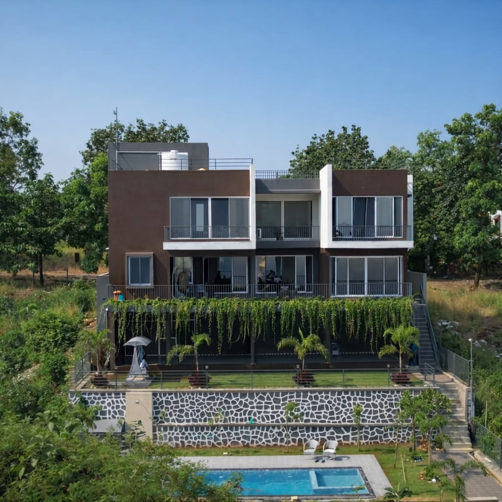 豪华3卧室别墅,带泳池• Shahapur Retreat