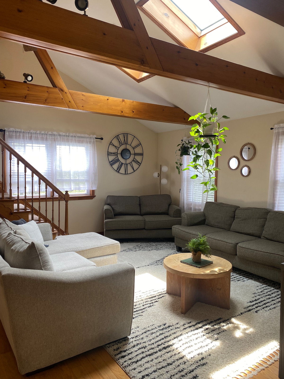 Welcome to our cozy loft hideaway nestled above the garage, where modern comfort meets rustic charm. It is the perfect retreat for solo travelers or couples seeking a unique and comfortable stay. Our Airbnb boasts a well-designed, open-concept layout that maximizes every inch of space and offers a warm and inviting atmosphere. A built in Mini split unit provides heat and AC for a comfortable temperature for all seasons.