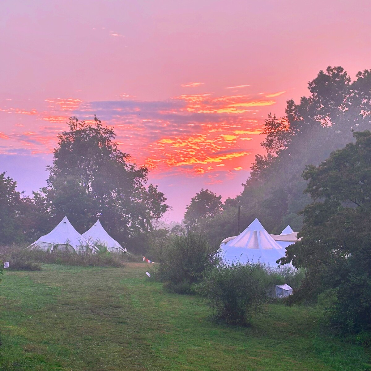 A heated stargazer tent for couples, friends, families, and groups, in a great setting among national parks and state parks, with access to amenities such as a hot water outdoor shower in the summer and fall, and a free sauna. The tent has a fridge, powerful fan, and solar power for your phones and gadgets. The site includes a firepit with grill grate, as well as chairs for the entire team. Tent has a queen bed and two bunk beds (4 persons). We set beds up based on your count.