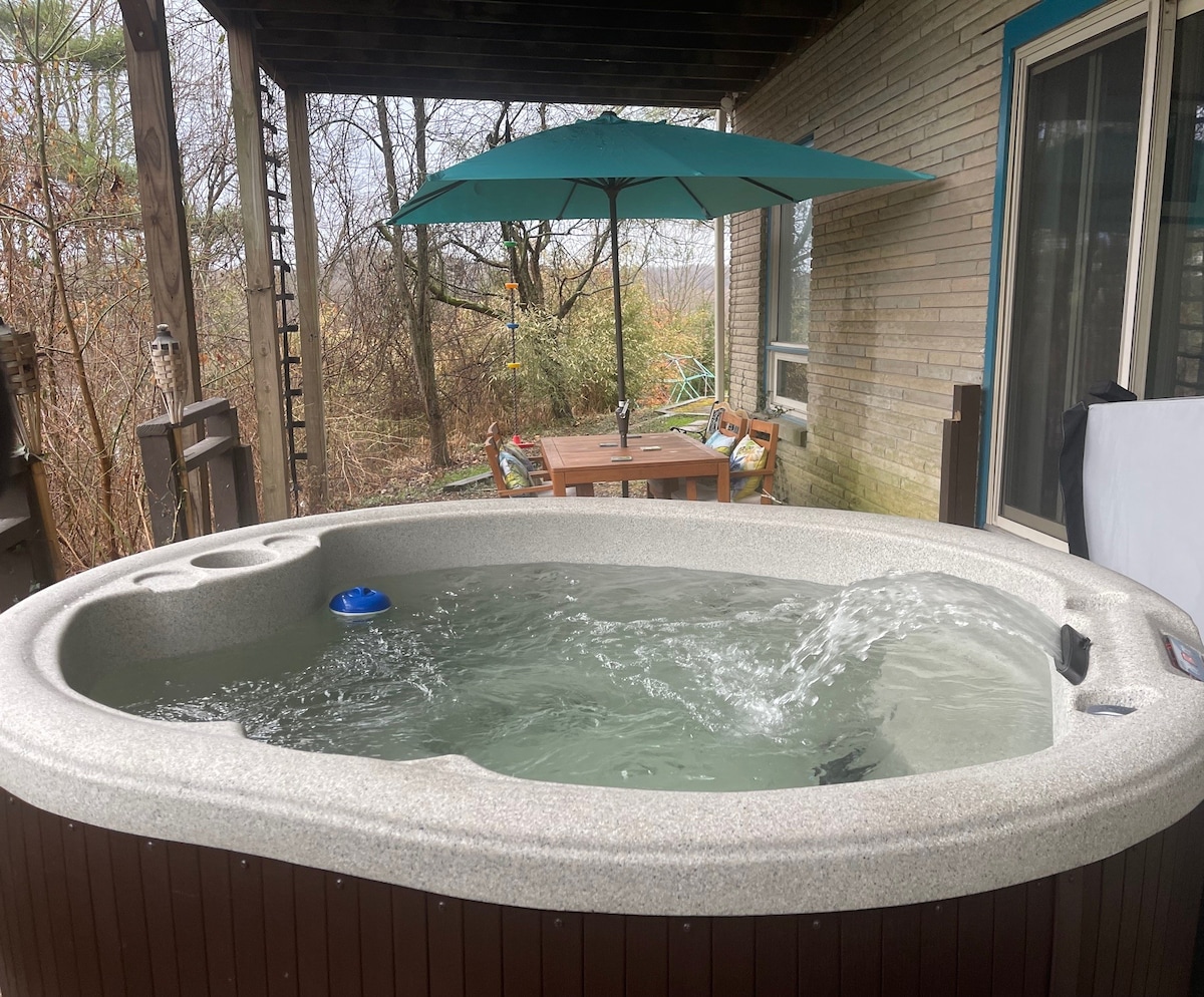 Our lovely cabin offers a hot tub, screened in porch, gas grill, fire ring, and the amenities of home conveniently situated between Athens and Hocking Hills, in an ATV-friendly community. We are located near Nelsonville's Historic Arts District, the Nelsonville Music Festival, Hocking College, Hocking Hills State Park, Athens & Ohio University, Lake Hope State Park, and Wayne National Forest. Sycamore is located on 50 acres of privately owned property and is sure to meet your vacation needs.