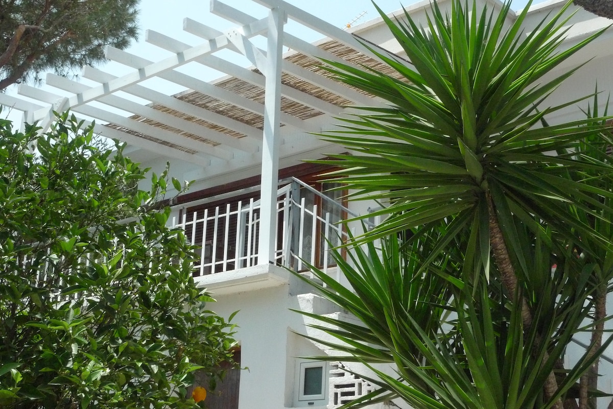 A luxurious 80m house with 2 huge balconies and sea-view! You can see the beach from every corner of the place and especially when you are in the bedrooms! There is a garden with red and yellow roses and a 7m palm tree! The place is new, luxurious, 50m from the beach and 15 min to the airport. It’s is quiet, peaceful, perfect for families with little kids and couples. It has 2 bedrooms, 2 bathrooms, a kitchen with all necessities, 2 huge balconies and a very spacious living room.