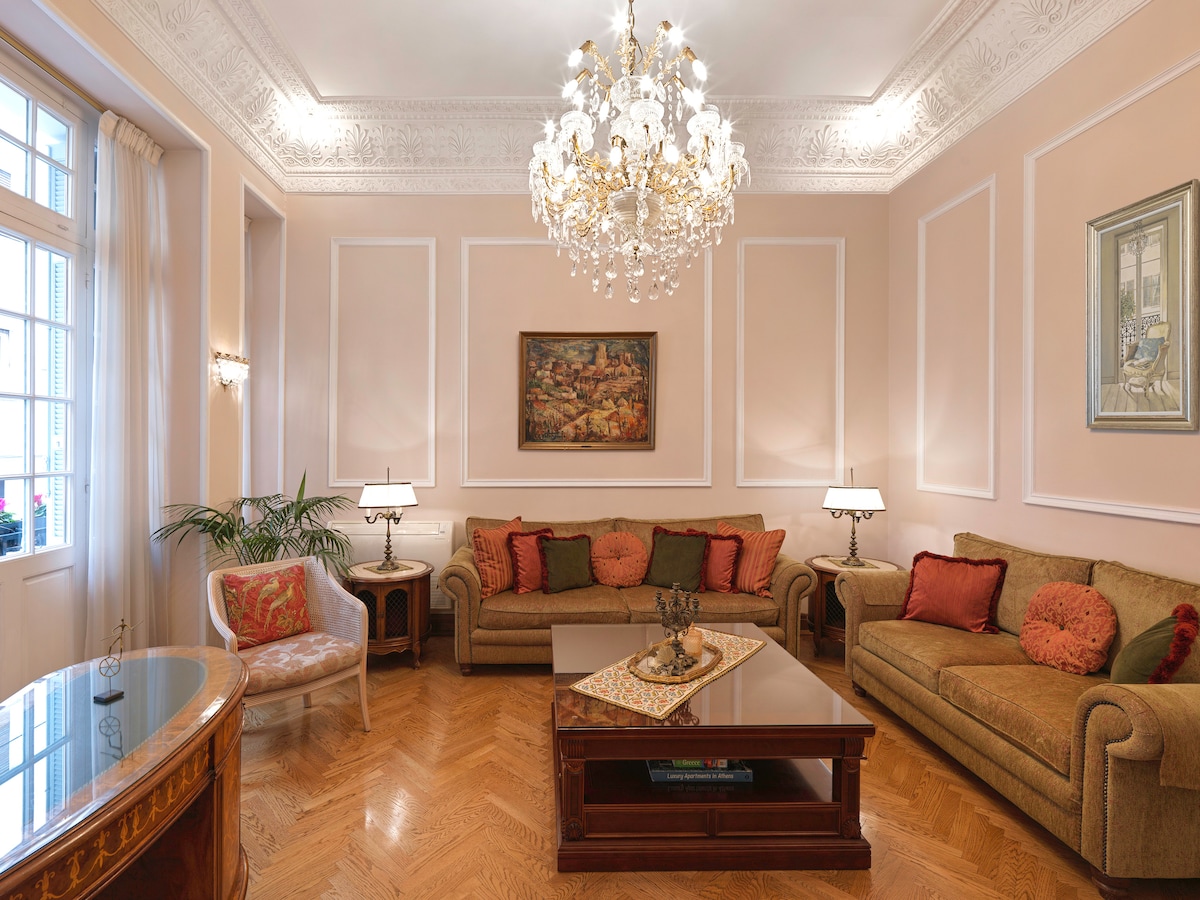 The iconic building of 1928, where the apartment is contained, is considered a precious gem of the Greek Neo-Classic style. Only a 5min walk from Syntagma, this 130 sqm apt has been restored to a luxurious place with deluxe comforts! Located in Kolonaki, the most upscale district in the heart of Athens is surrounded by trendy cafes/restaurants, stylish boutiques, galleries & only a short walking distance to all the historical sites of the city! Enjoy the 5* amenities, the high ceilings, the absolutely magnificent chandeliers & golden mirrors & definitely our majestic balcony with street views! The Apartment: a 130 sqm fully renovated apartment within an iconic building of 1928, with four meter high ceilings and all the luxurious modern comforts. It is nicely situated close to cozy restaurants, coffee shops, wine bars, and trendy boutiques as well as a 5 min walk from the Syntagma metro station and a 3 min walk from the Museum of Cycladic Art! The 1928 building is considered a gem of the Greek Neo-Classic style. It has been sensitively restored to reflect its status as one of Athens historic properties. All amenities are equivalent to a 5 star hotel! Check here for more details: athensluxuryhomes.com With two bright and airy bedrooms (with double-beds) on the ground floor, and one smaller cozy bedroom in the attic (single bed), all with luxury feather pillows, cotton linens and black-out curtains, it can comfortably accommodate up to five people. Each bedroom is equipped with a safe box and complimentary Netflix (CNN, BBC, TV5 and more) as well as special reading lights in case you are a literature lover. And don't forget to use the luxurious sun blocking curtains for a better and longer sleep! ;) Free WiFi is available throughout. A beautiful balcony to enjoy the Attic light and sun! For our business travelers, there is a comfortable office desk to work on and a Complimentary super fast WI-FI connection. It boasts a fully equipped modern kitchen, with everything you need to cook (whether preparing a small brunch or a proper meal), two modern bathrooms, as well as a chic large living room and a separate dining room. All rooms are equipped with heating and air-conditioning units. The kitchen is equipped with: dishwasher, washing machine and dryer, cooker, microwave, large fridge, kettle, toaster, iron and a Nespresso machine. Our place is perfect for professionals, couples, groups or families. The Neighborhood: Explore the most fashionable neighborhood in central Athens with its vibrant coffee-culture and top end restaurants. It is one of the leading shopping areas of Athens, enjoy the myriad of shops that Kolonaki has to offer from exclusive brand names and haute-couture to unique high-end boutiques. It is also just under the picturesque Lycabettus Hill, which offers amazing 360° views of Athens. Very well connected, with Evangelismos metro station a 5-minute walk and Constitution Square (Syntagma) less than a 7-minute walk away. All of central Athens and the most important sites the city has to offer are within walking distance, or just one metro stop away (Parthenon, the Agora, Plaka, Monastiraki, the Parliament with the changing of the guards, the National Garden, the Panathenaic Stadium). There is also much to discover for the art lovers. Two of the finest private collections in the country, the famous Benaki Museum with its collection of modern art, and the Cycladic Museum, which often hosts exhibitions of contemporary art, are a mere 5- minute walk. In addition to these institutions, Kolonaki is also famous for its many private galleries with everything from modern and contemporary art to antiques: Zoumboulakis Galleries, Kalfayan Galleries, Gallery Kaplanon, CAN, Gagosian Gallery, to name a few. Extras to make your stay even more comfortable are available upon request: -Nespresso coffee machine at your fingertips in the kitchen - FREE Netflix -Three TVs - Samsung curved Full HD in the living room with 5.1 surround system -Room service, which includes fresh & fluffy bathrobes, slippers (disposable), moisture-firming face masks, shampoo, shower gel, conditioner, body lotion & sewing kit all by "KORRES", the famous greek natural product brand. -Beds are furnished with lavish down pillows for medium and firm support. For guests who prefer less support, there is an in-room closet stock with additional soft support down pillows. -Breakfast delivery from the nearby bakery (charge: 15 euros/per person). -Taxi to wait for your pick up at the airport (charge: 45 euros). Alternatively, a luxury minivan (charge: 120 euros). Our guests will enjoy a personalised welcome and tour of the house, as well as tips and recommendations offered for sights and things to do and see in Athens, restaurants etc. Kolonaki, is the most elite area in the heart of Athens & has for years been the most favorite meeting point for all the classy Athenians. At your doorstep you can have a glass of wine at one of the numerous cozy restaurants or enjoy your coffee & pastries watching the stylish crowd strolling around! Don't miss out the famous art galleries, the museums and luxury brand boutiques located around! Not only this. All the historical sites of the city are within a short walking distance! There is easy transport from the airport by the metro to Evangelismos station, in 45 minutes. Or by taxi in 35-40 minutes. From the port of Piraeus by metro in around 40 minutes, or by taxi 25 minutes. Nearest metro stations: Syntagma and Evangelismos (700m away) The apartment is located at the corner of Tsakalof and Iraklitou street, where Tsakalof is the most popular pedestrian street of Athens for its cosy cafes, wine bars and trendy restaurants. We love hosting great people at our apartment, so we'll be happily expecting an inquiry from you so we can discuss all the details you may need about it or our aristocratic neighborhood.