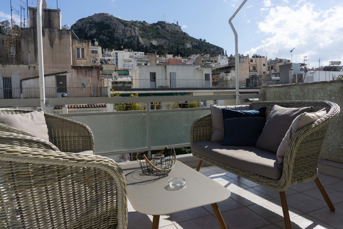 雅典市中心的公寓,可欣赏吕卡维托斯山景观