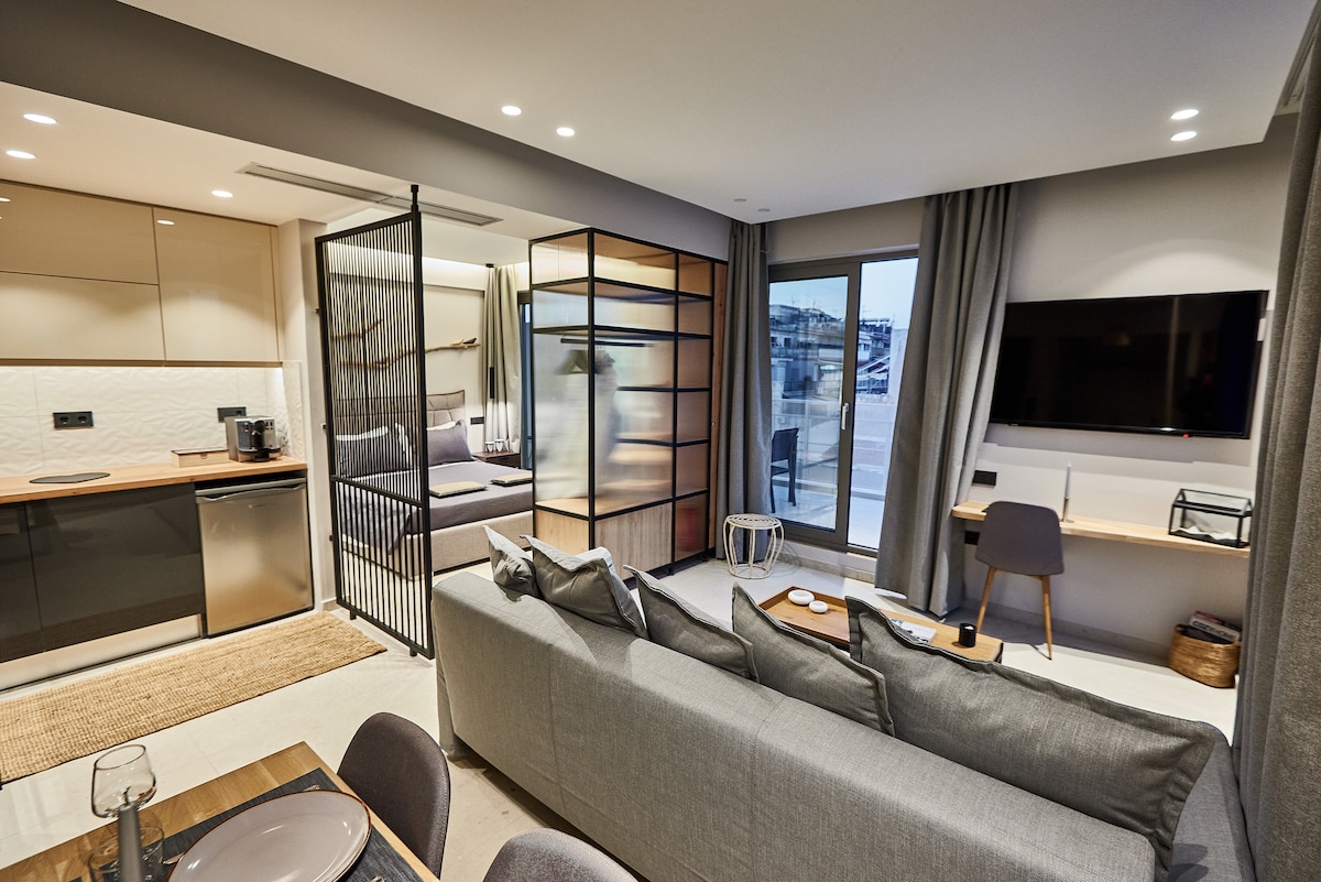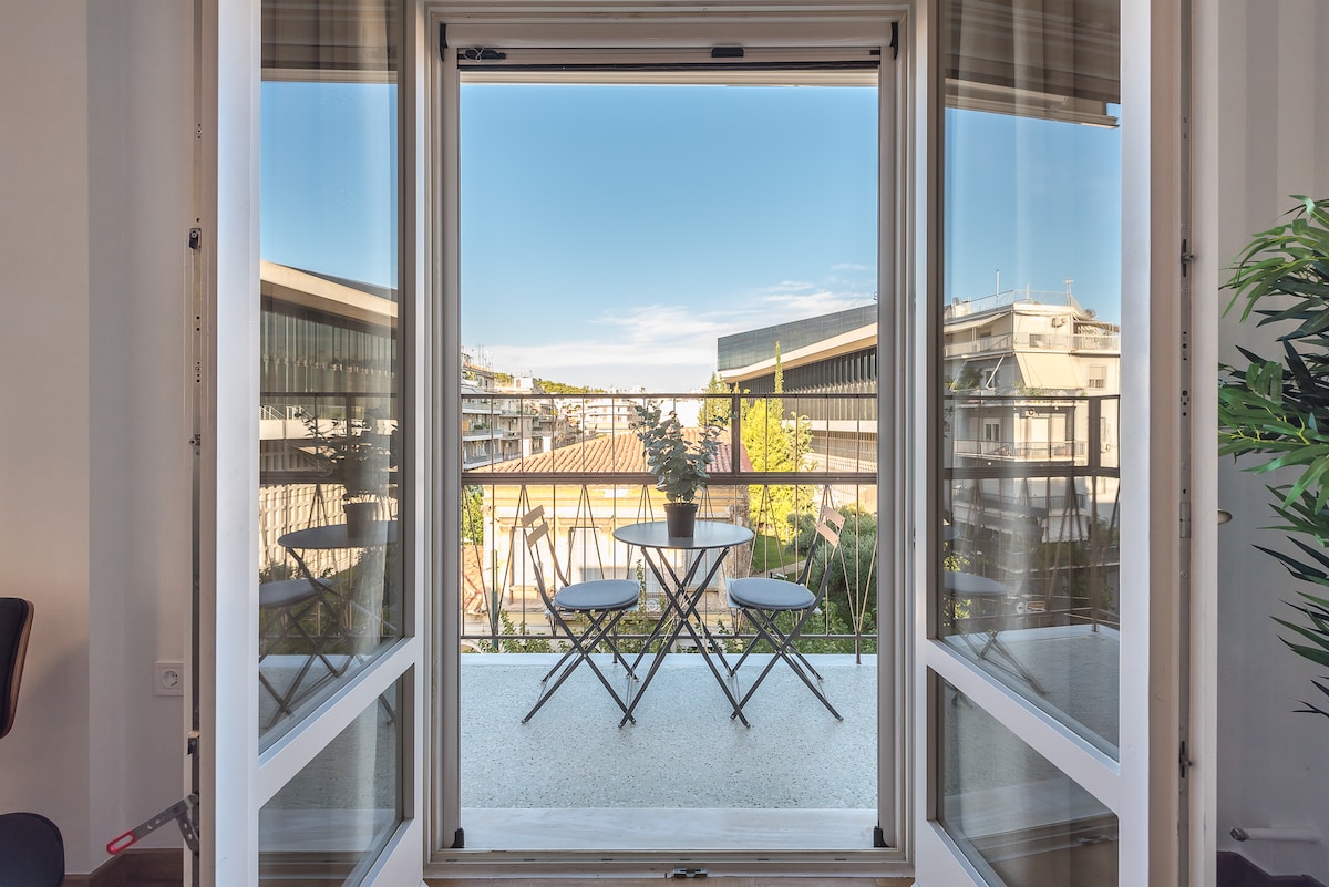 雅典卫城景观,舒适的中央单间公寓,靠近地铁!