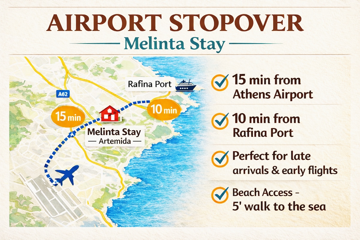 距离雅典机场(ATH)15分钟 • 拉菲纳港(Rafina Port)| Melinta Stay