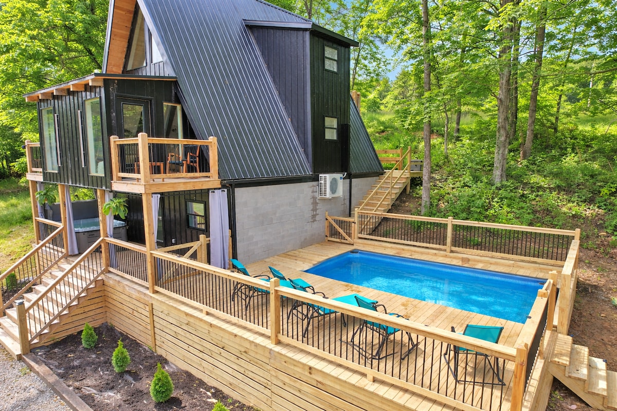 霍金山(Hocking Hills)A 形房屋,配备泳池、热水浴缸和篝火炉!