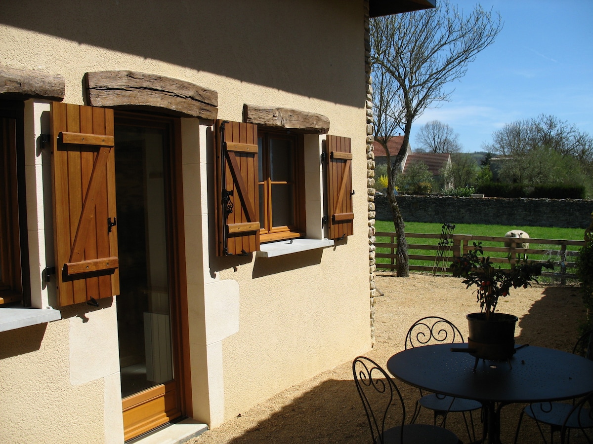 Stunning views across the Auxois countryside from both house and garden. Very comfortable double bedroom with private entrance & ensuite bathroom in a sleepy hamlet. The heated garden kitchen can be enjoyed year round providing simple cooking facilities, dining table and armchairs. There is an area for alfresco meals, a small herb garden & deck chairs to enjoy the spectacular views; off road parking. The owners, Bill and Jenny Higgs live next door - very discreet but always on hand to help.