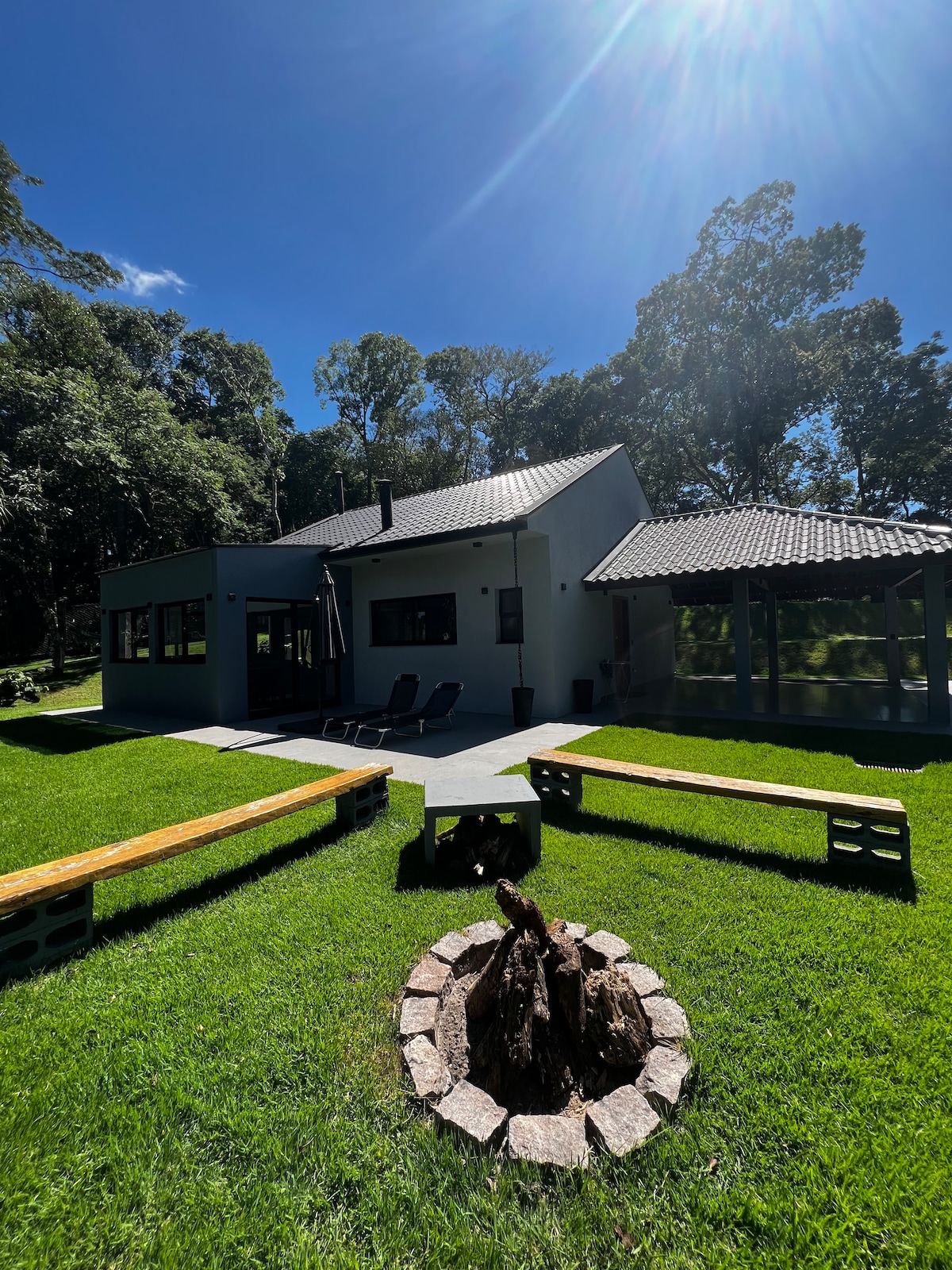 Escape da rotina e viva dias de calma e conforto na Casa Floresta — um refúgio moderno cercado por mata nativa e silêncio. Aqui, o bem-estar se encontra com a natureza: relaxe na sauna a lenha com vista panorâmica, aprecie o pôr do sol do deck e durma embalado pelo som da floresta. A casa é perfeita para casais que buscam desacelerar, trabalhar com vista verde e ou simplesmente estar presentes. Desperte com o nascer do sol, cozinhe com tranquilidade e sinta o tempo passar no ritmo da natureza.