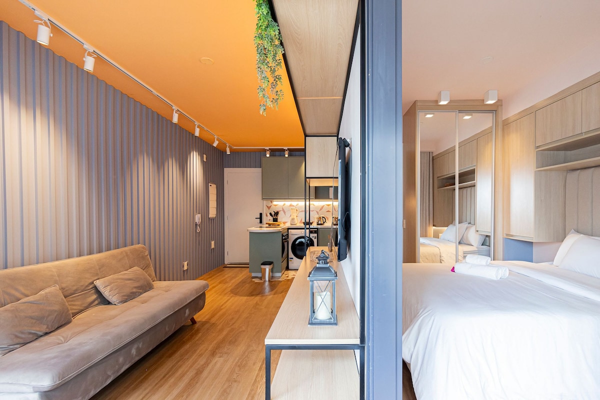 Com a experiência do nosso apartamento NYC - Berrini, lançamos mais este magnífico espaço. O 18° pavimento proporciona uma vista deslumbrante para o Parque do Povo, São Paulo Corporate Towers e Av. Juscelino Kubitschek. Localizado no distrito do Itaim Bibi. Vila Olímpia é um bairro com vias tranquilas para passeios, restaurantes, baladas, teatros, shoppings, forte centro financeiro e tecnológico.