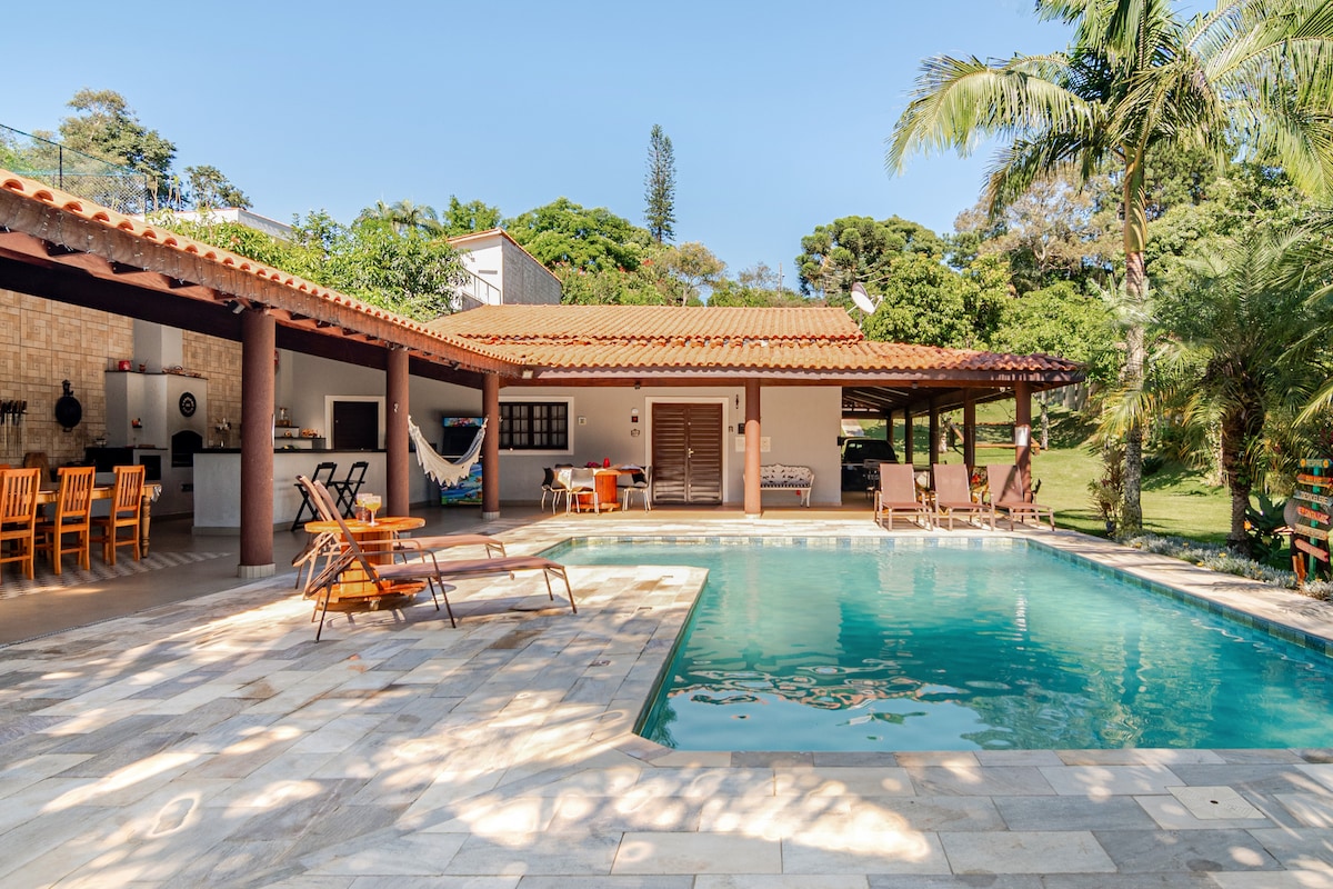 Refúgio com piscina climatizada em Condomínio fechado em Atibaia. Casa ideal para relaxar com conforto, segurança e lazer. Perfeito para famílias, casais ou grupos que querem desacelerar e aproveitar momentos especiais. - Piscina privativa climatizada (solar) e iluminada - Amplo deck para aproveitar dias ensolarados - Churrasqueira completa + fogão e forno à lenha - Lareira e fogueira (perfeito no inverno) - Ambiente aconchegante, bem decorado e equipado - Wi-Fi 700 megas