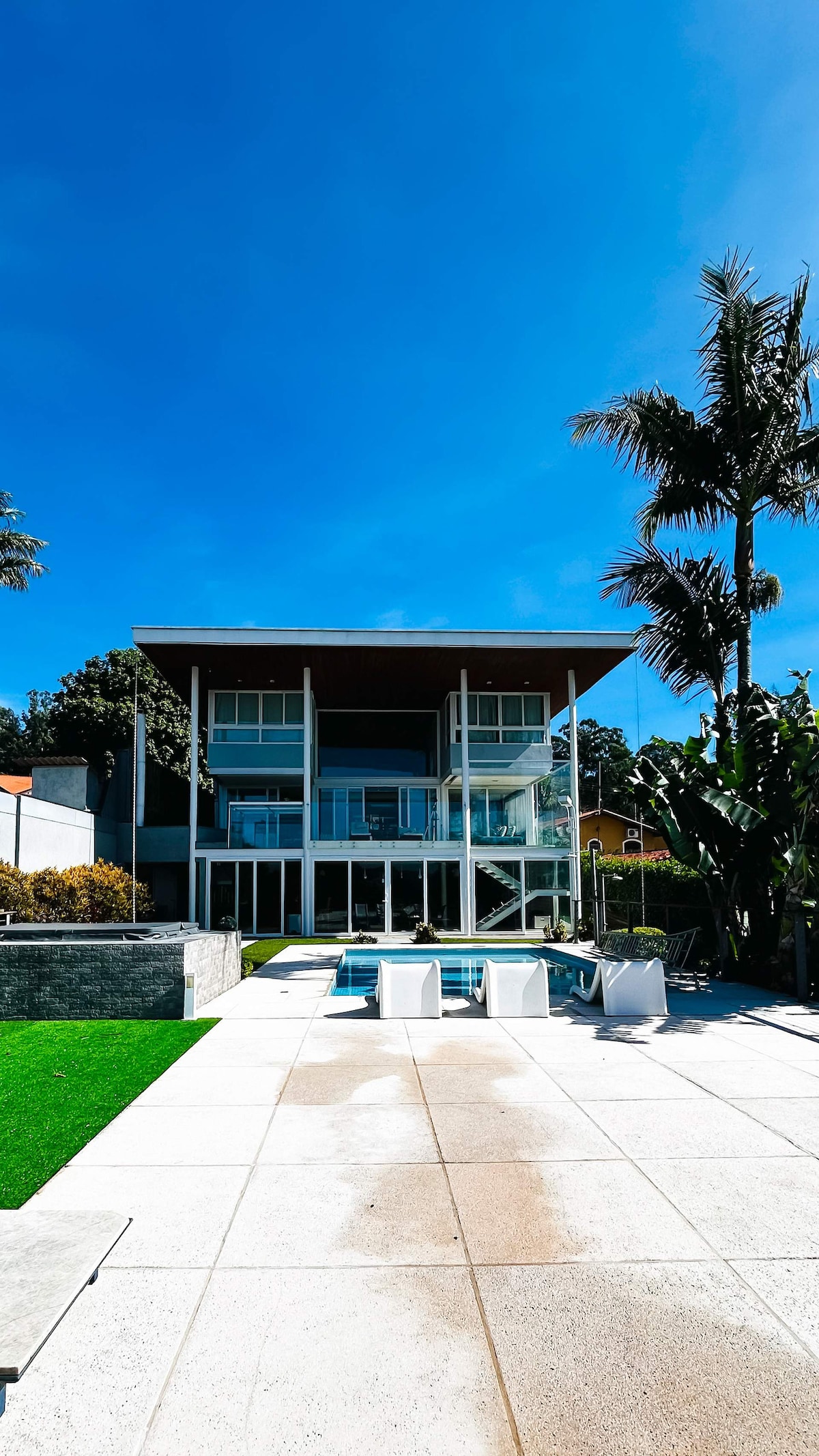 Casa de luxo encrustada em pedra singular, com vistas deslumbrantes para a Serra da Cantareira. Totalmente equipada e climatizada, com decoração sofisticada, lareira, biblioteca, espaço exclusivo de trabalho, deck com jacuzzi, churrasqueira. Suíte master romântica com banheira panorâmica . Tranquilidade e segurança de um condomínio fechado. Observação; Para fotos e filmagens com fins comerciais, solicitamos que entre em contato conosco pelo Airbnb para consultar os valores e regras aplicáveis.