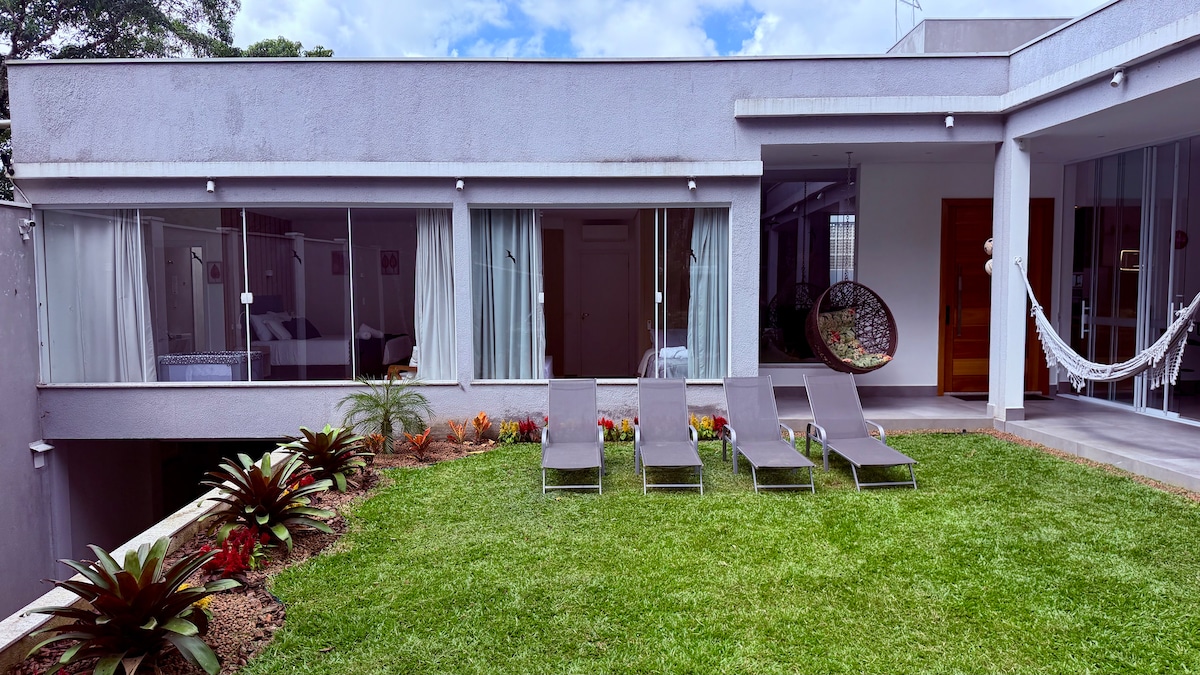 Escape da rotina e viva dias de calma e conforto na Casa Floresta — um refúgio moderno cercado por mata nativa e silêncio. Aqui, o bem-estar se encontra com a natureza: relaxe na sauna a lenha com vista panorâmica, aprecie o pôr do sol do deck e durma embalado pelo som da floresta. A casa é perfeita para casais que buscam desacelerar, trabalhar com vista verde e ou simplesmente estar presentes. Desperte com o nascer do sol, cozinhe com tranquilidade e sinta o tempo passar no ritmo da natureza.
