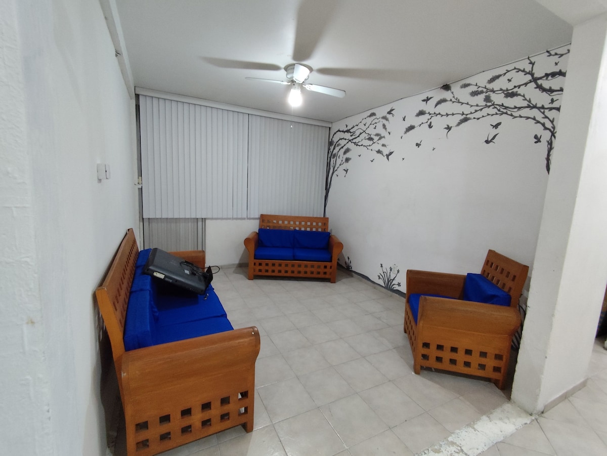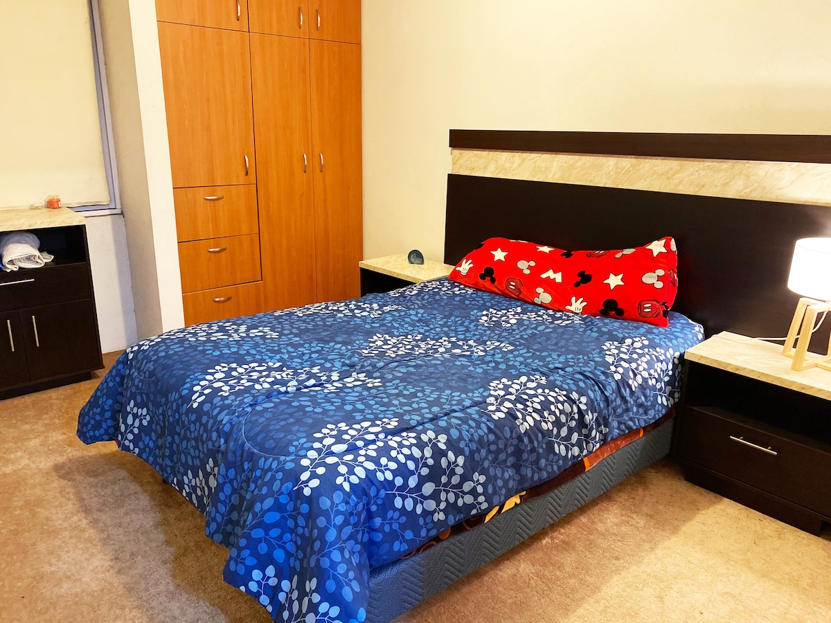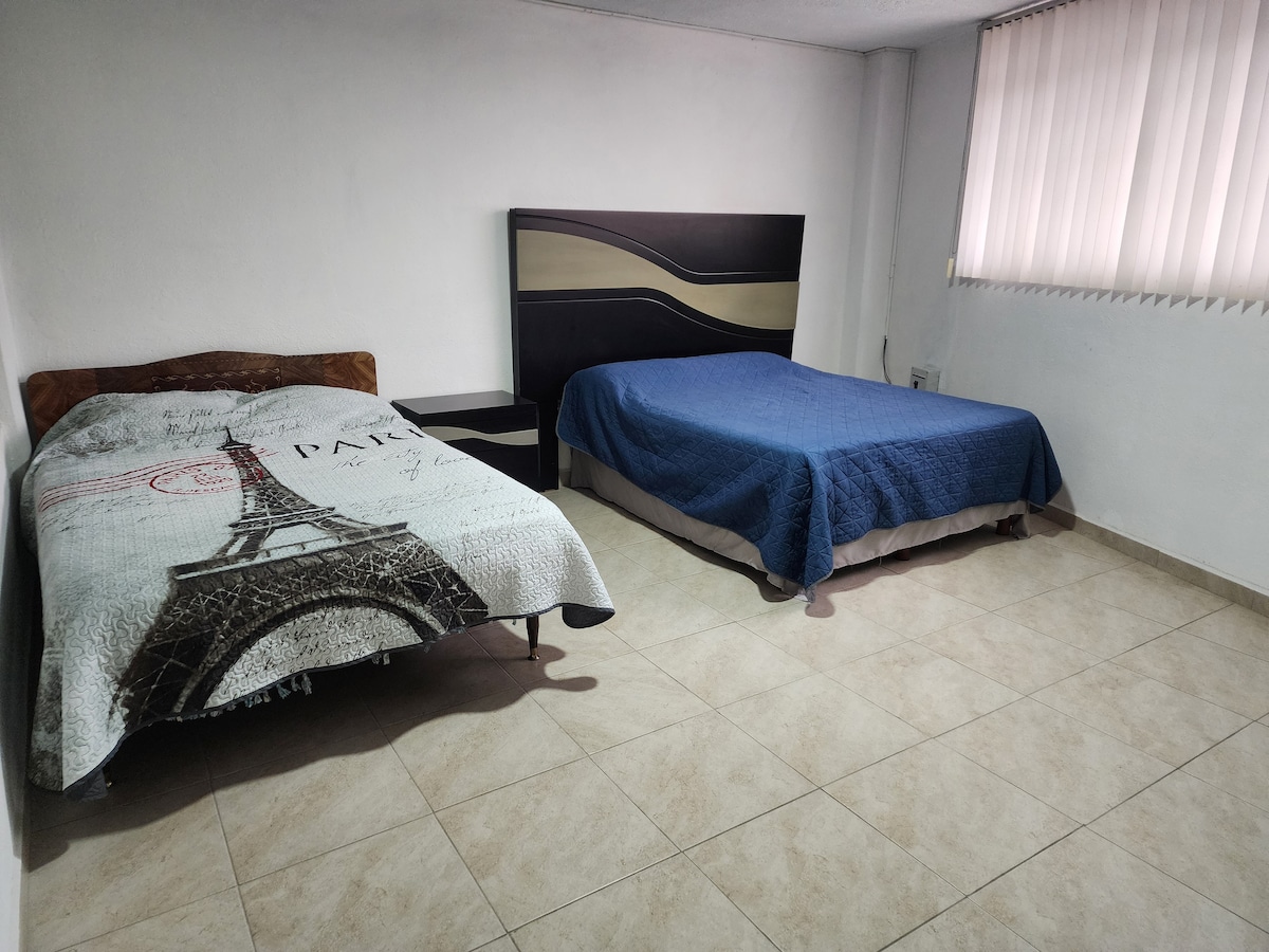 Disfruta de la sencillez de este alojamiento tranquilo y céntrico.Departamento en segundo piso con acceso por escaleras. Cuenta con baño completo, cocina totalmente equipada, dos recámaras muy amplias con seis camas individuales, sala-comedor con pantalla de TV, pequeña terraza, área de lavado y estacionamiento seguro para un auto. En la parte trasera hay un parque privado de 3,000 m² ideal para hacer ejercicio, correr, que los niños jueguen o para que los trabajadores descansen y se distraigan