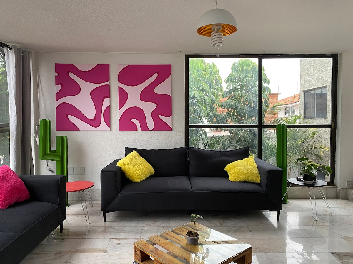 El departamento tiene una ubicación ideal, ya sea que te transportes en auto o transporte público. Está a sólo 2 min de Periférico y muy cerca de plazas comerciales donde puedes encontrar excelentes restaurantes y tiendas ( a 5 min de Mundo E y 10 min de plaza Satelite). Caminando puedes ir a tiendas de autoservicio para que no te falte nada mientras te hospedas. Ideal para un fin de semana, estudiantes o quien busca un hogar temporal para trabajar. Contamos con estacionamiento para 1 auto.