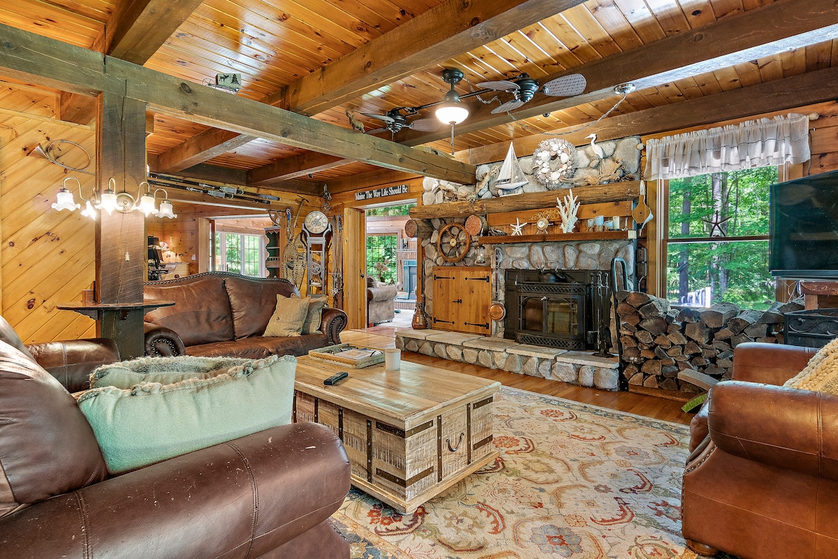 Take it easy at this unique and tranquil getaway. Escape to our log cabin nestled in the heart of the woods and perched on the serene shores of a pristine lake in Groton, Massachusetts, less than 1 hr from Boston. This secluded hideaway offers the perfect blend of rustic charm and modern comfort, providing an idyllic setting for a tranquil getaway. Our cabin ensures complete privacy and a true sense of escape. Enjoy uninterrupted views of the sparkling lake and the soothing sounds of nature.