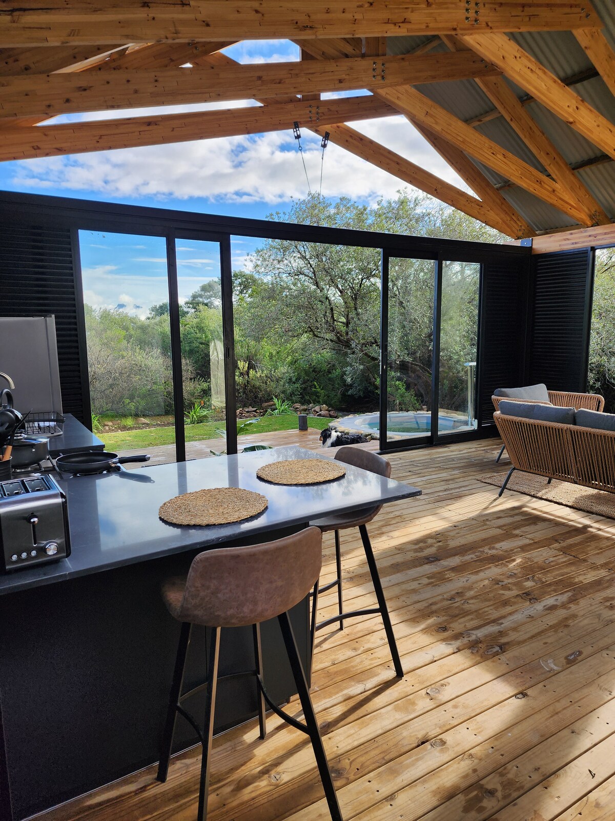 We are proud to present the cabin-living experience at its absolute finest. - A fusion of luxury, comfort, and exquisite fynbos surroundings. The Solace Cabin is nestled in an indigenous landscape on a 200 hectare farm in Rawsonville, surrounded by the Matroosberg Mountain Range.