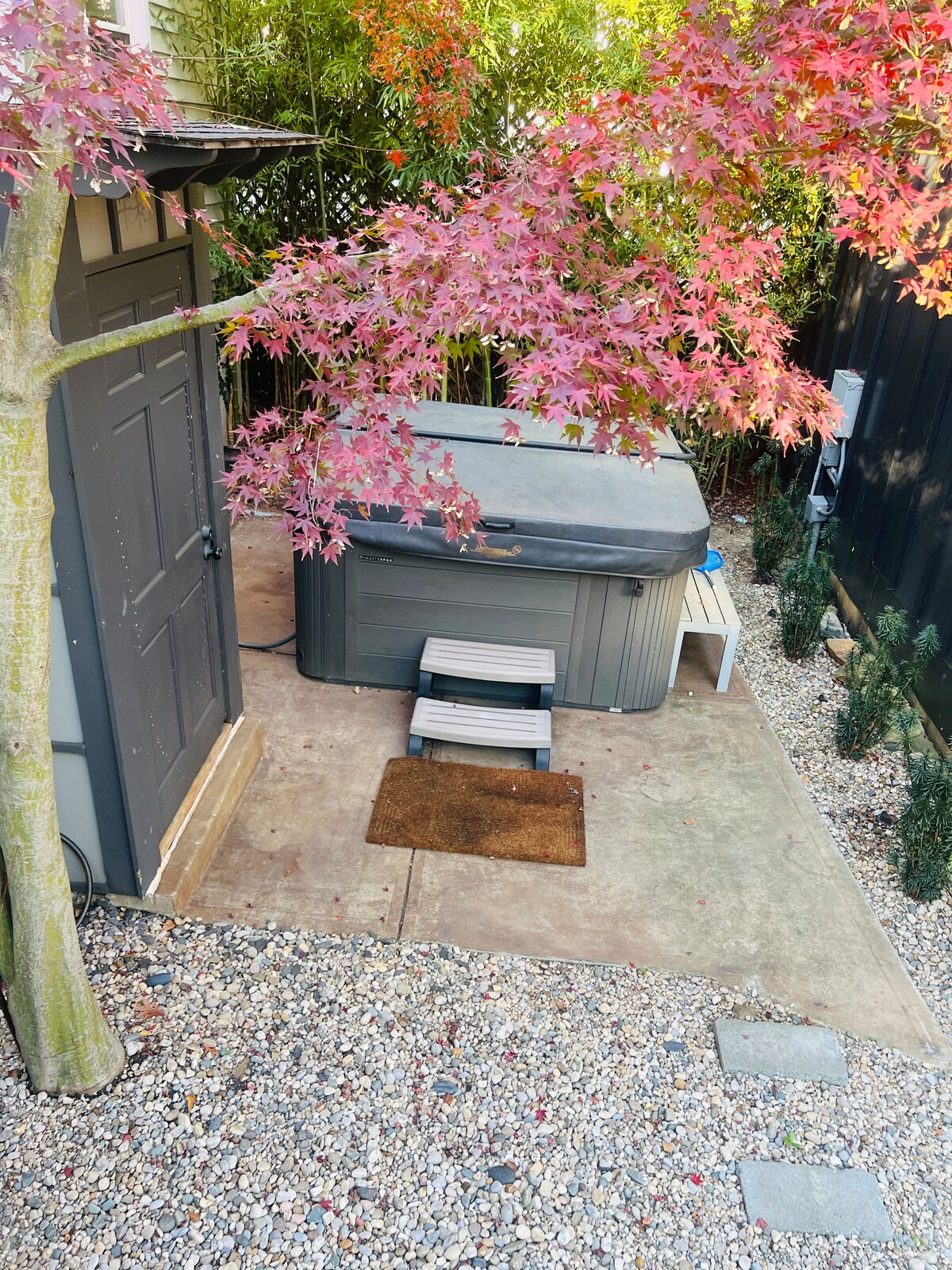 Enjoy this creekside nature home in the heart of Sandy Springs! From your 2nd story living area, you overlook Marsh Creek from the treetop level! Enjoy the hot tub in your private backyard nature preserve. Private grill, patio, hot tub, and dining area. Nature sightings include deer, fish, turtles, snakes, birds, and the most beautiful blue heron walking tall if you are lucky enough to catch a glimpse. A true paradise inside the city! Home is 25' x 25' so super cozy yet perfect for two!