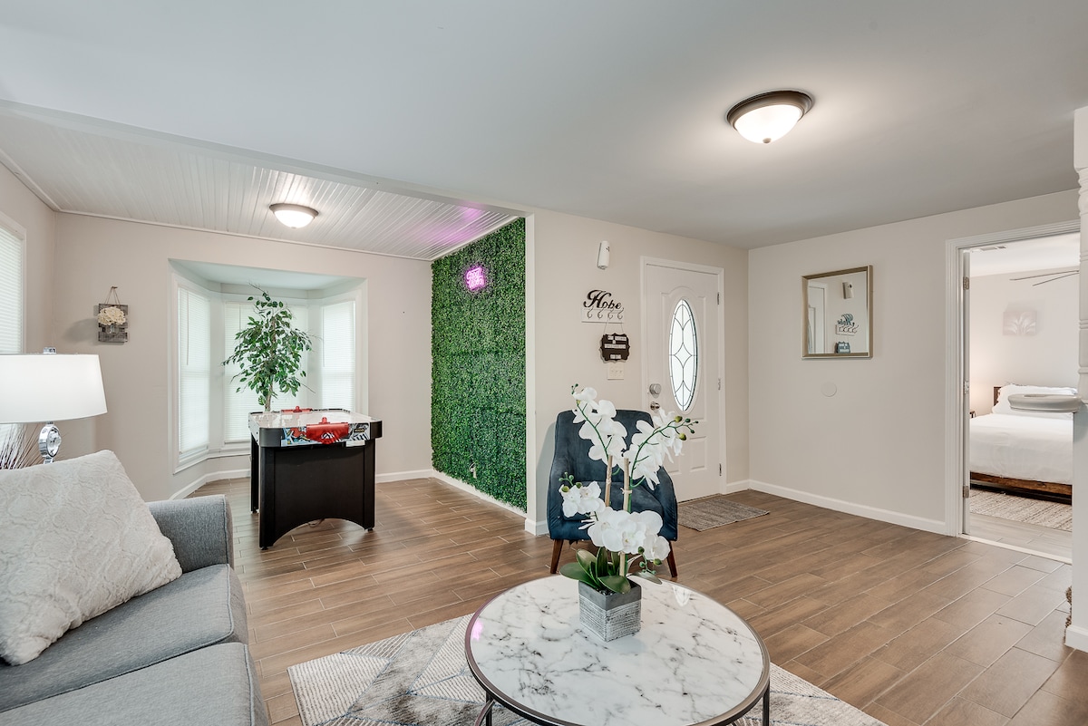 Four‑bedroom oasis where upscale comfort meets resort‑style amenities. Set on two secluded acres in East Point, this home sleeps up to ten guests and is just five minutes from Hartsfield‑Jackson Atlanta International Airport and fifteen minutes from downtown. Whether you’re in town for business or leisure, you’ll appreciate the bright, stylish interiors and the brand‑new 48‑foot pool—the centerpiece of your private backyard retreat CLOSED POOL DURING WINTER MONTHS (closed from October to April)