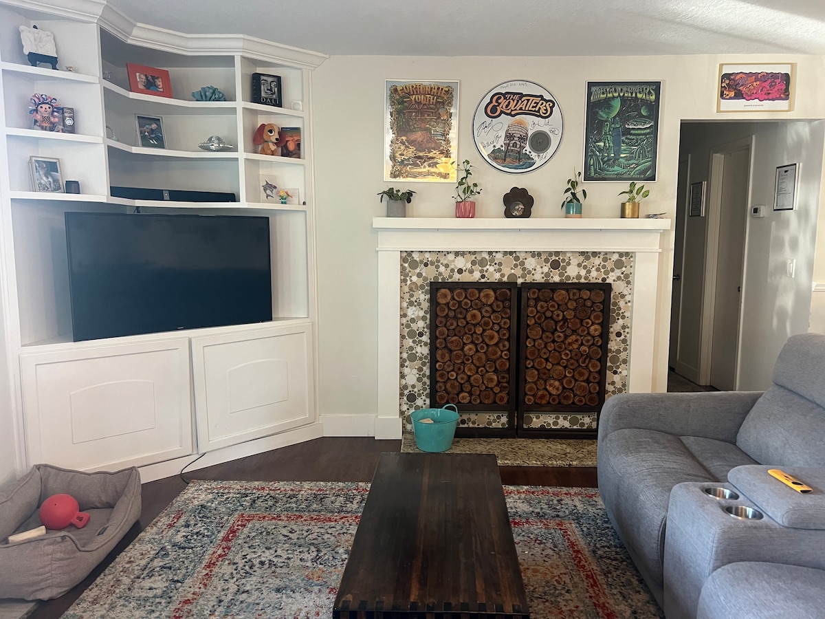 This cute space is attached to our home yet has complete privacy. there is one bedroom with one queen size bed The living area has a dual reclining sofa and chair so comfy to watch tv or sit by the fireplace on chilly nights. The main living space also has a table and chairs to enjoy meals or use as workspace. kitchenette with Keurig coffee maker , coffee , microwave, toaster oven, and mini-fridge. There is a cooktop in the apartment. Great location only 6 blocks from the beach.1