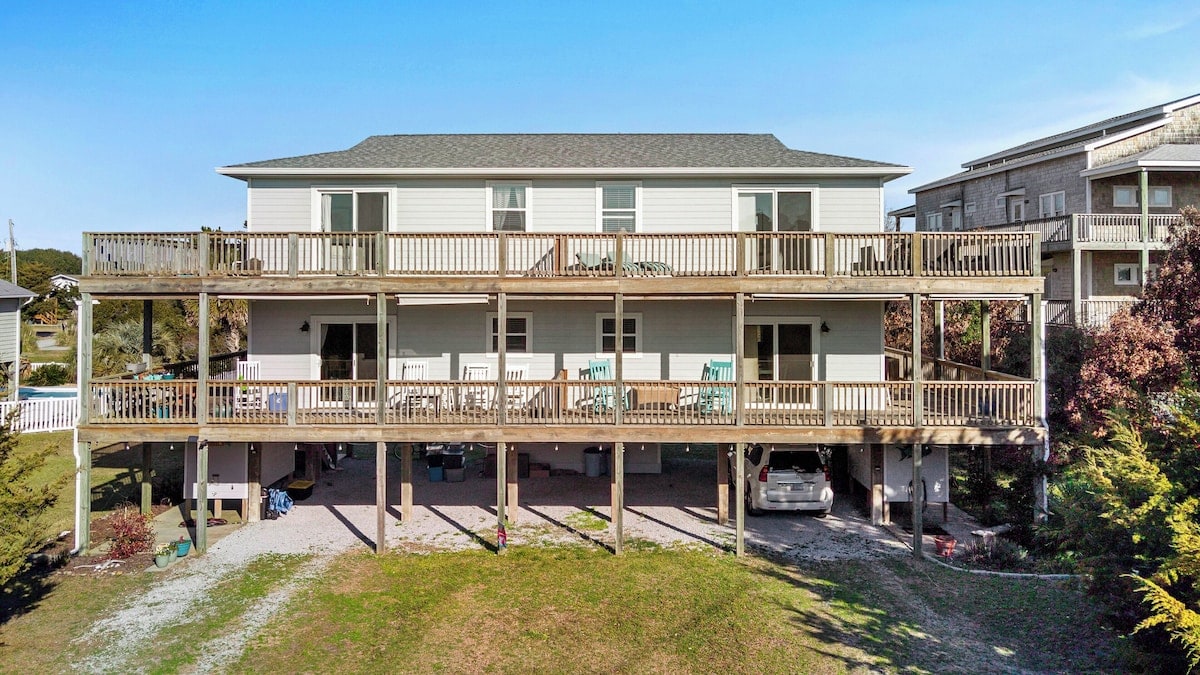 3bd, 2.5 bath. AMAZING views of intercoastal. Community pool (open NOW) & the ocean is across the street! Level 2 EV charger included. Golden Tee arcade, 3-in-1 foosball, hockey, billiards upstairs. Large connect-4 in the carport.. Dock where you can fish, kayak (included), paddle board (included). 9ft foam surf board to ride waves. Open plan upstairs w/ updated kitchen that has granite and all the necessities. King, Queen, and bunks w/ 4 flat screen TVs.