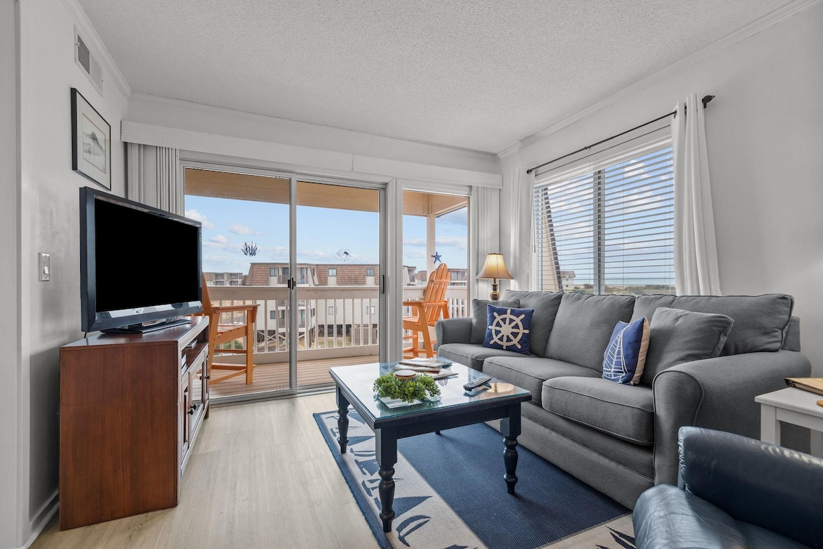 This beautiful two-bedroom condo is seconds from the beach by deck walkway, cathedral ceilings in the living area with sleep sofa, a private ocean-view deck, fully-equipped kitchen, washer, dryer, three TV's, updated bathrooms, AND a 50 game home video machine (free play) including PacMan and Gallega. Also, there is a choice of an elevator or steps to the condo, a community pool, hot tub, grills, and parking. Work from here with private Wifi (110 Mbps). Enjoy this oasis!
