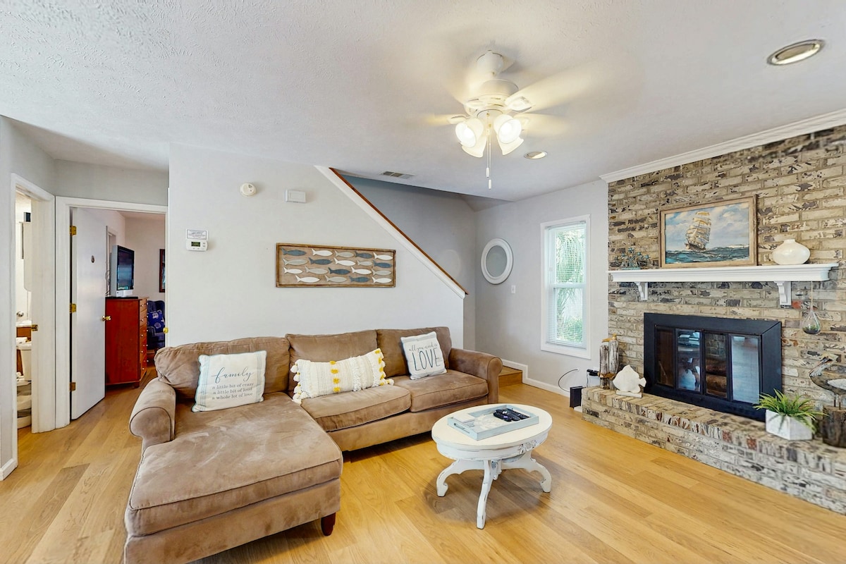 This secluded coastal home is located in a unique and tranquil neighborhood yet only a 3 minute walk to the beach. The layout won't disappoint and is perfect for a family getaway with three spacious bedrooms and beds (1 king, 2 fulls, 3 twins). The two bonus patios and outdoor sun deck provide an abundance of space for outdoor dining, relaxing, and entertaining. Furbabies, trailers, and motorcycles are welcome and guests also have the option of adding a golf cart rental during their stay.