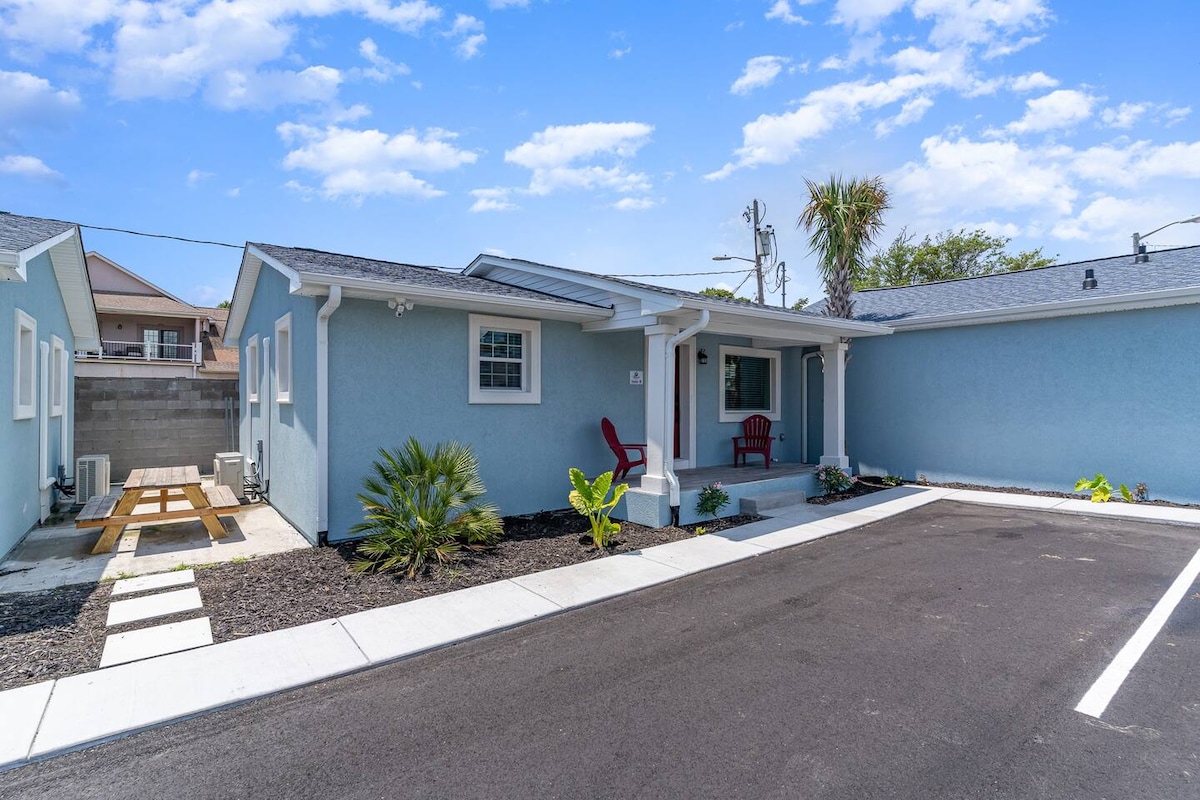 Adorable 1 Bedroom, 1 Bath Cottage (Suite D Sleeps 4) LOCATED 320 Yards from the BEACH. Enjoy this completely remodeled home that Boasts Modern Kitchen W/ SS Appliances & Granite Counters along with Central Air, WIFI, Washer/Dryer & all your basic necessities. Enjoy your outdoor table along with Charcoal Grill -- Golf Cart Friendly too! Centrally located & minutes to restaurants, local shopping & activities. Pull out couch sleeps an additional 2 people.Snow birds welcome! We do allow 1 small