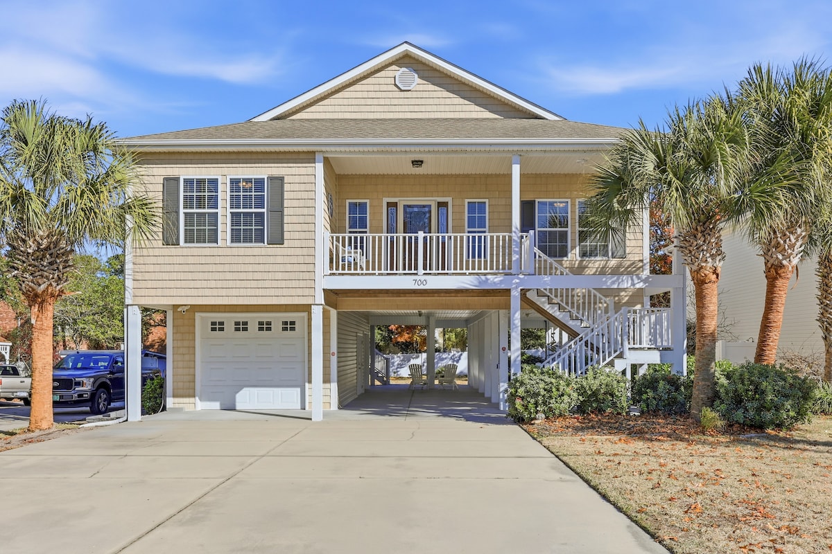Beautiful, newly renovated 4-bedroom raised beach house only 2 blocks from the ocean. Plenty of room for outdoor entertainment with a large pool area surrounded by palms and access to a salt marsh for fishing. Only moments away from Barefoot Landing shopping, golf, and nightly entertainment. In consideration of younger guests, younger than 25, a dep $1500 will be required before check-in and 2 prof references sent directly to gkladd@comcast.net from nonrelatives older than 25 years of age.