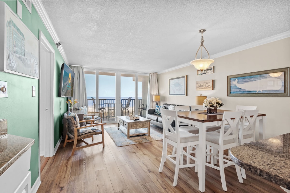 Enjoy an unforgettable stay for you and your group of up to 8 in this top floor, ocean front condo. Sit on the balcony overlooking the ocean as you listen to the waves while you sip your warm cup of coffee or refreshing cocktail. This 3-bedroom condo is the perfect spot for your next getaway with family or friends. Come create your next beach memory with us! MESSAGE me today for ideas on how to make your stay unforgettable and Military Discounts!