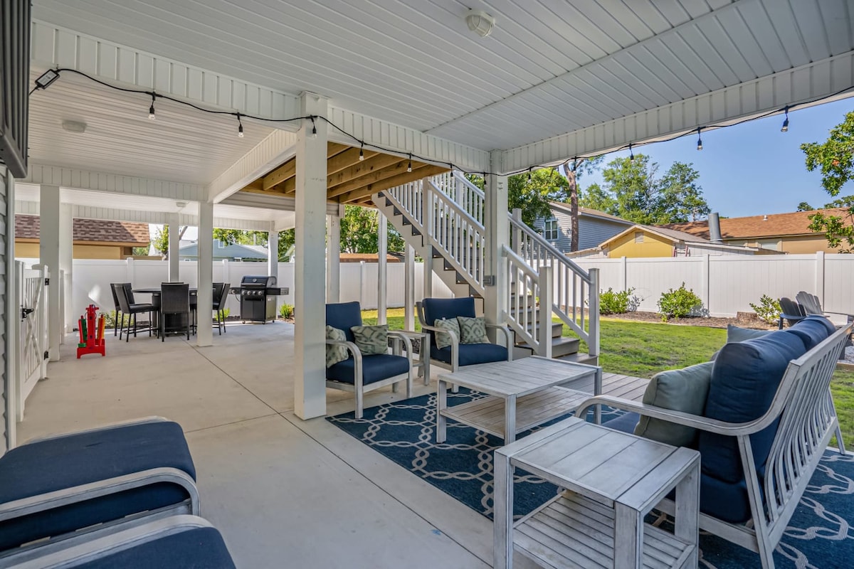 Come make sun-kissed memories at "Barefoot Dreams Bungalow!" Just 3-minutes' walk from shore, this peaceful bungalow is a haven for families and pets. Kids love the overflowing toy box and book nook, while pups give two paws up for the fenced backyard. On cool nights, enjoy the screened porch and fire pit. The kitchen is well-stocked, and we provide beach gear. Driving times to nearby coastal fun: - Barefoot Landing (5 min.) - Little River (20 min.) - Myrtle Beach (30 min.) - Conway (30 min.)