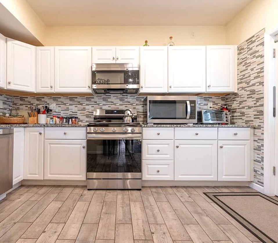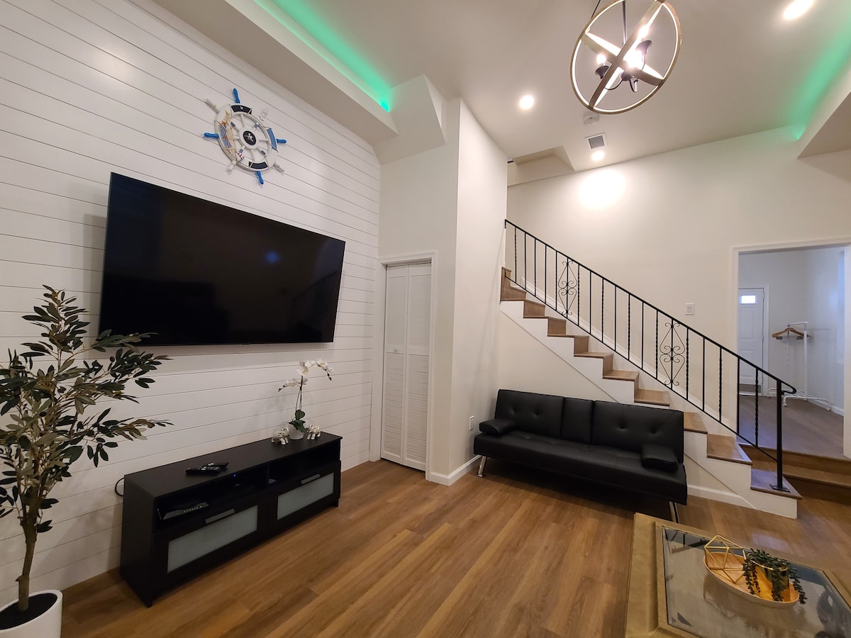 HEATED FLOORS. Newly renovated 2nd-floor apartment with luxury amenities just steps from the beach/boardwalk. Enjoy a spacious king bed, heated floors, and large smart TVs. The fully equipped kitchen is perfect for cooking, while the cozy living and dining areas provide ample space to relax. The stylish bathroom features a double sink and beautiful tiled shower. This perfectly located modern space offers comfort and convenience for your stay.