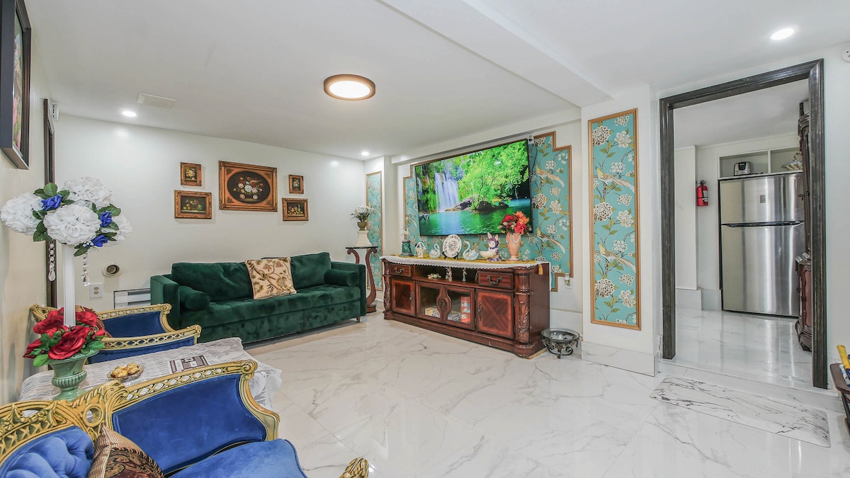 Spanning approximately 189 sq ft, this cozy yet stylish space is ideal for streamlined living just one block from the beach. The kitchenette features a sleek granite countertop, minifridge, microwave, induction cooktop, and a counter-height dining set. The bathroom offers a custom-tiled shower in soothing blue-grey tones. Furnished with a queen bed, smart TV, and bureau, this apartment is thoughtfully appointed for your convenience, complete with beach towels for your enjoyment.