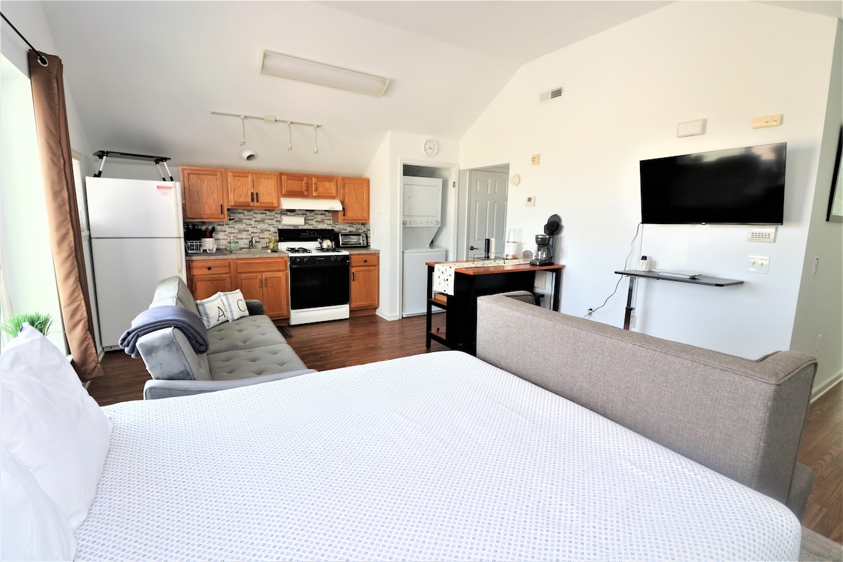 99% 5 STAR-REVIEWS! They can't all be wrong! HOT TUB HAS ADDITIONAL COST. SPA ROOM with all amenities, Add'L $200 per stay (not per day) for use 24 hours a day during stay. 48 Hours notice required to request. BASED ON AVAILABILITY PRIVATE/SAFE STUDIO APT. w/ Kitchen / Full Bath / In Unit Laundry / Free Parking. NO BED LINENS, TOWELS OR WASH-CLOTHS. Please bring your own or rent from us for $35 1 Queen Bed, 1 Queen Sleeper Futon/Sofa, 1 Queen Blow-Up Mattress 3rd/4th guests add $50/pp.