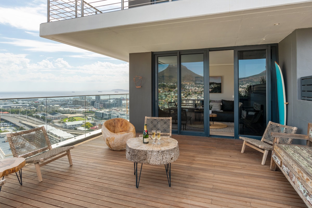 Opulent penthouse in Bree Street with 270 degree city, mountain and sea views with expansive outdoor patio area. Ultra-modern and exquisitely-decorated with breathtaking views across the whole of the city bowl and waterfront/harbour out onto South Africa's most iconic landmark and Natural Wonder of the World: Table Mountain, there is no excuse to not live your very best, most exclusive life from this penthouse.