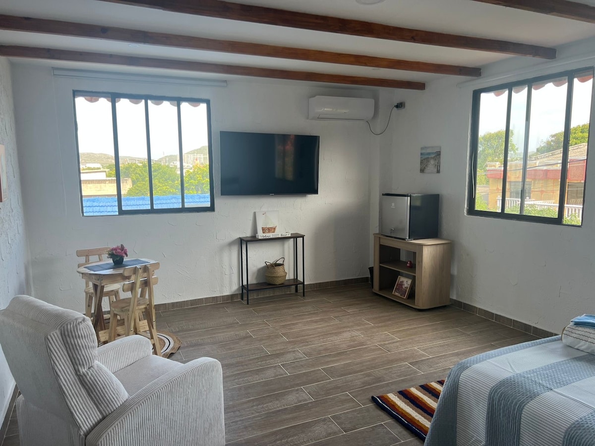 Relájate en CASA MAR, tu refugio en Puerto Colombia. En este acogedor aparta estudio para descansar en pareja, familia o con amigos. Ideal tambien para estancias largas y nomadas digitales. A 3 calles del Malecón y playa Mira Mar la plaza y Muelle están a pie unos 15 min, entrada independiente y Todas las comodidades para sentirte en casa