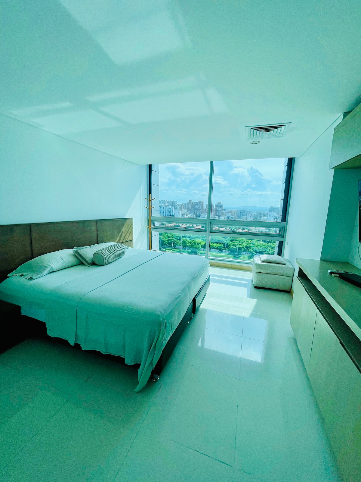 Disfruta cerca a todos los sitios de interés de la ciudad cómodamente. Apartamento nuevo, a 20 minutos caminando del Centro de Eventos Puerta de Oro y Gran Malecón del Rio, vista de frente al canal de acceso del Rio Magdalena, el norte de la ciudad y al malecón. En carnavales, puedes vivir como pocos, a tan solo 50 mts., los mejores desfiles desde un palco envidiable. Tenemos un rooftop para que disfrutes del amanecer y atardecer sobre el rio magdalena y Barranquilla.