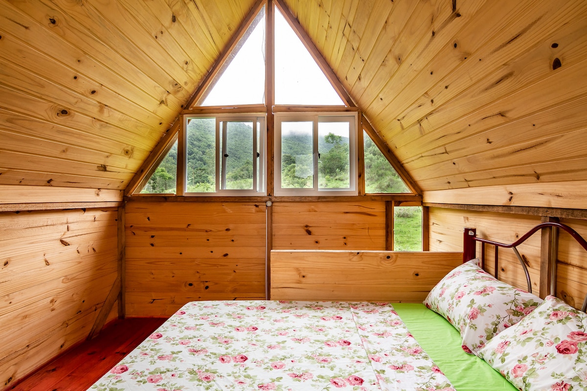 Quarto elevado as alturas, com vista para o Rio Maquiné e vista ampla da paisagem inusitada e diferenciada.