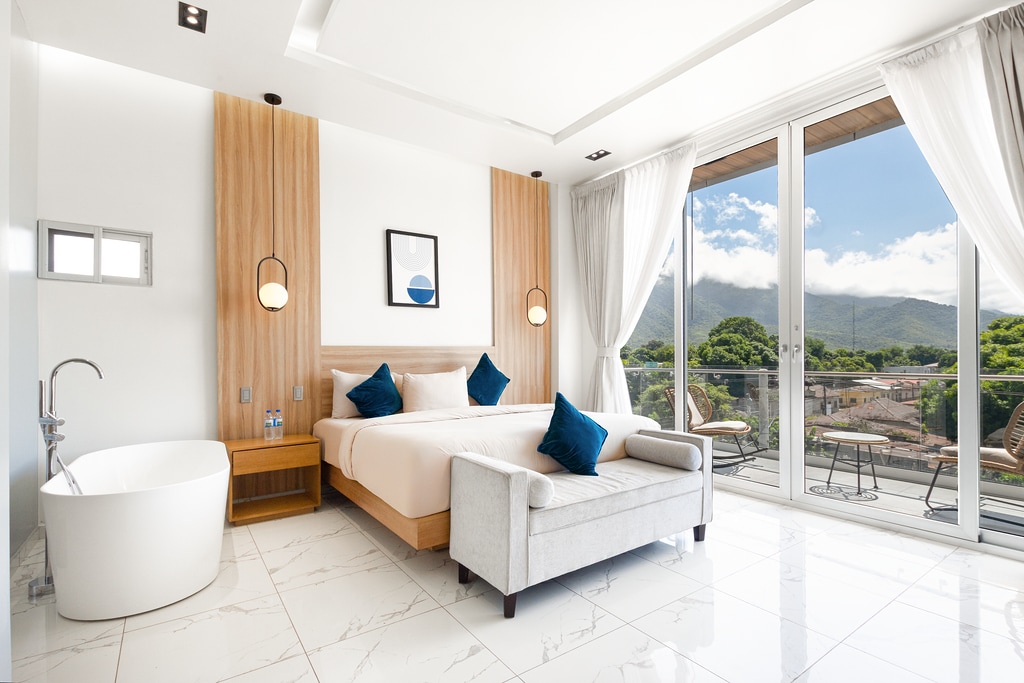 Esta suite ha sido diseñada para quienes valoran el lujo, el confort y la privacidad. Con interiores elegantes, amplitud en cada rincón y una vista privilegiada de la ciudad, ofrece un ambiente ideal para relajarse y disfrutar de una estancia inolvidable.